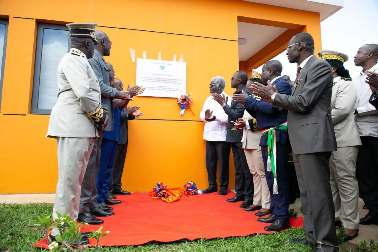 科特迪瓦时间2025年10月5日下午,科特迪瓦总理府总理罗贝尔·贝格雷·曼贝、职业培训与技术教育部部长科菲·恩格桑以及地方政府多位官员在科特迪瓦中部格贝克地区迪亚博正式为“迪亚博综合职业高中”举行揭牌仪式。中国驻科特迪瓦使馆经商参赞李成尧、中航国际成套设备有限公司驻科特迪瓦代表处负责人何新雨出席揭牌仪式。成都航空职业技术大学外派教师团队积极参与仪式接待与组织工作,展现了成航在国际职业教育合作中的专业素养与责任担当。期间,科菲・恩格桑部长与援外教师杜涛、伏坤进行了亲切交流,对学校在科特迪瓦开展的土木工程专业培训成果给予了高度评价。