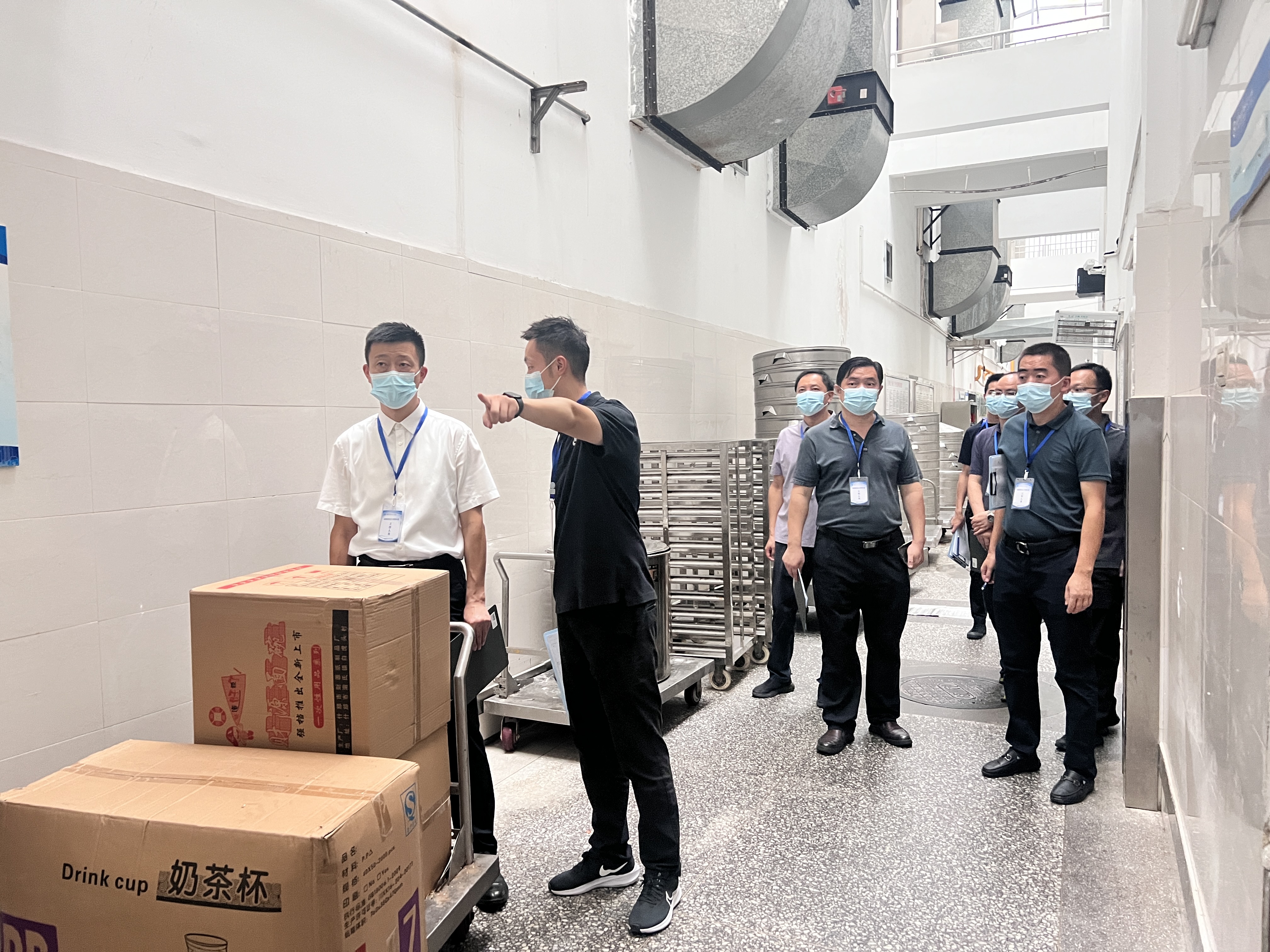 熊熙副校长带领检查组先后前往各实训基地、图书馆附楼、博学楼、食堂等重点部位进行逐一检查,重点督导食品安全责任制落实情况,消防设施器材运行维护情况,疏散通道、安全出口畅通情况和用火、用电、用气情况。检查组现场指出了存在的隐患问题,如堵塞消防通道、消防器材被遮挡等,要求相关单位对检查中发现的问题及时处理整改,并举一反三、自查自纠;对于无法立即整改的隐患问题,应立即上报安全工作委员会办公室并做好整改计划。