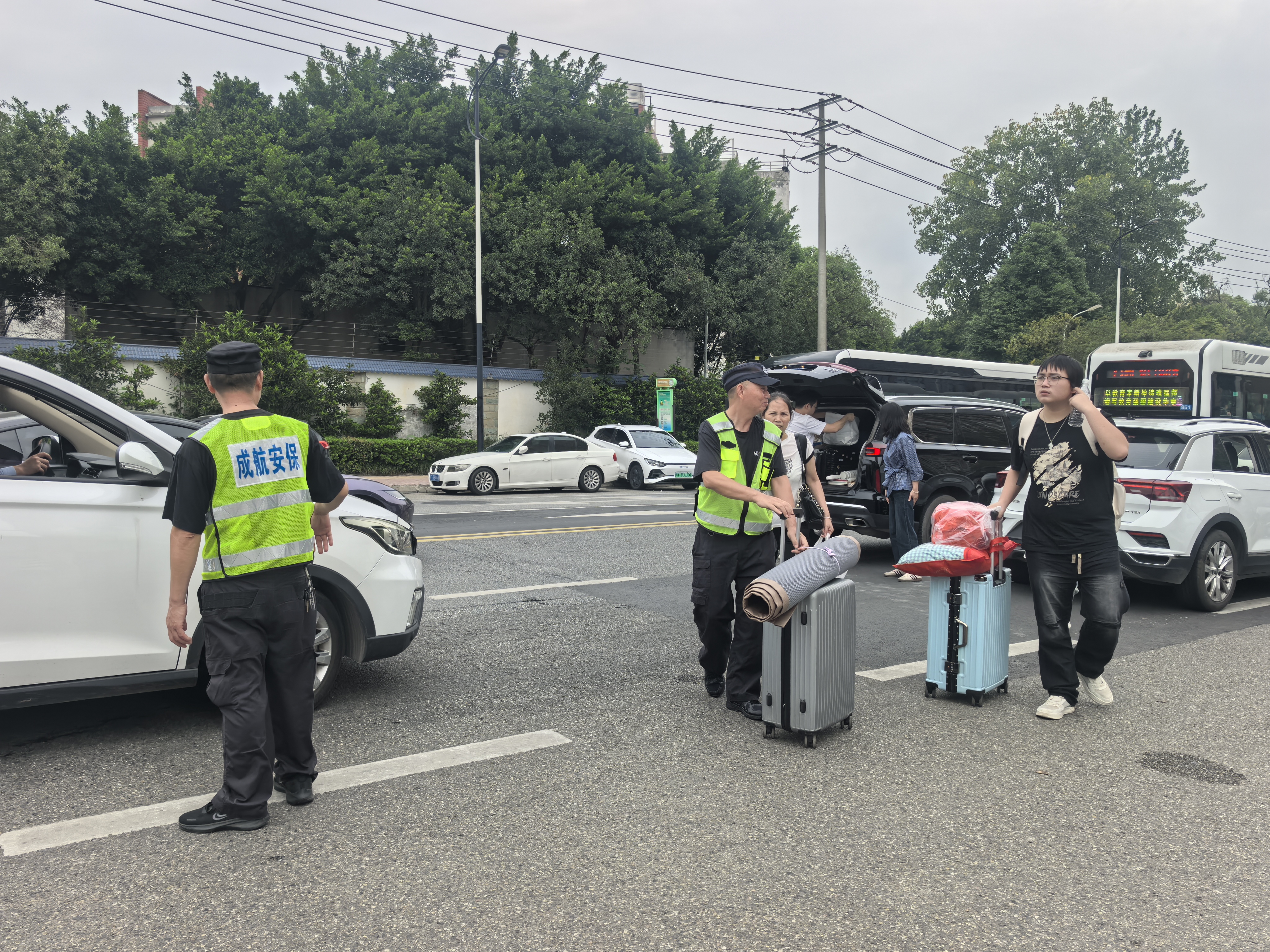 在便民服务方面,保卫处工作人员主动延伸服务触角,积极协助携带大件行李新生搬运行李,用行动传递校园温暖。同时,针对新生及家长普遍关注的户籍迁移流程、校园安全注意事项等热点问题,工作人员现场耐心答疑解惑,提供精准指引,真正实现了“安全有保障、服务有温度”。