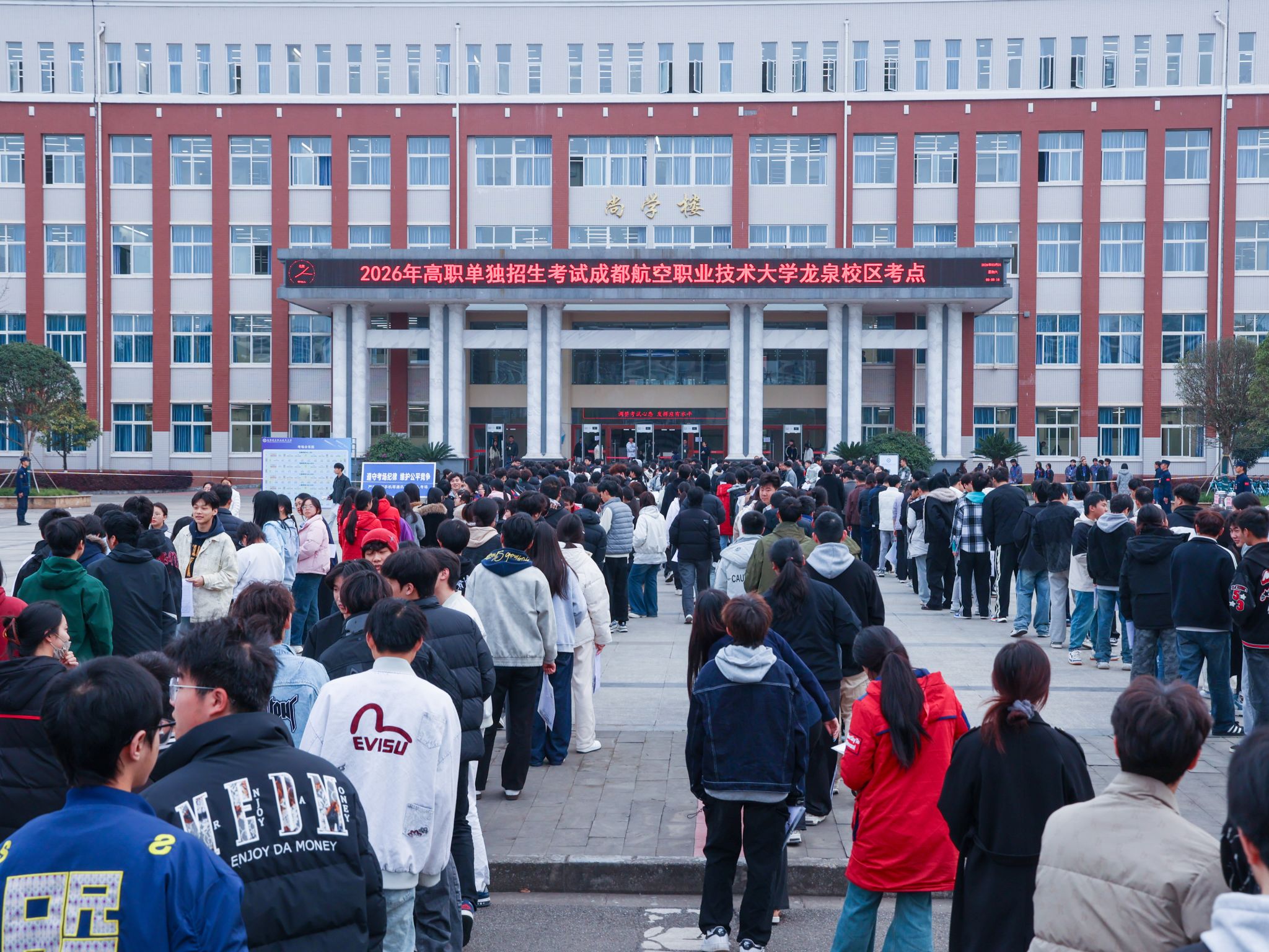 四川省2026年高职单招考试于3月21日在我校顺利开展,考生共计三千余人次,共设常规考场98个,备用考场3个。为切实落实学校单独招生考试的工作部署,确保考试期间校园安全稳定,保卫处周密部署,精心组织,全力以赴,积极配合学校各相关部门做好有关考试期间安全工作,圆满完成2026年高职单招考试安全保障任务。