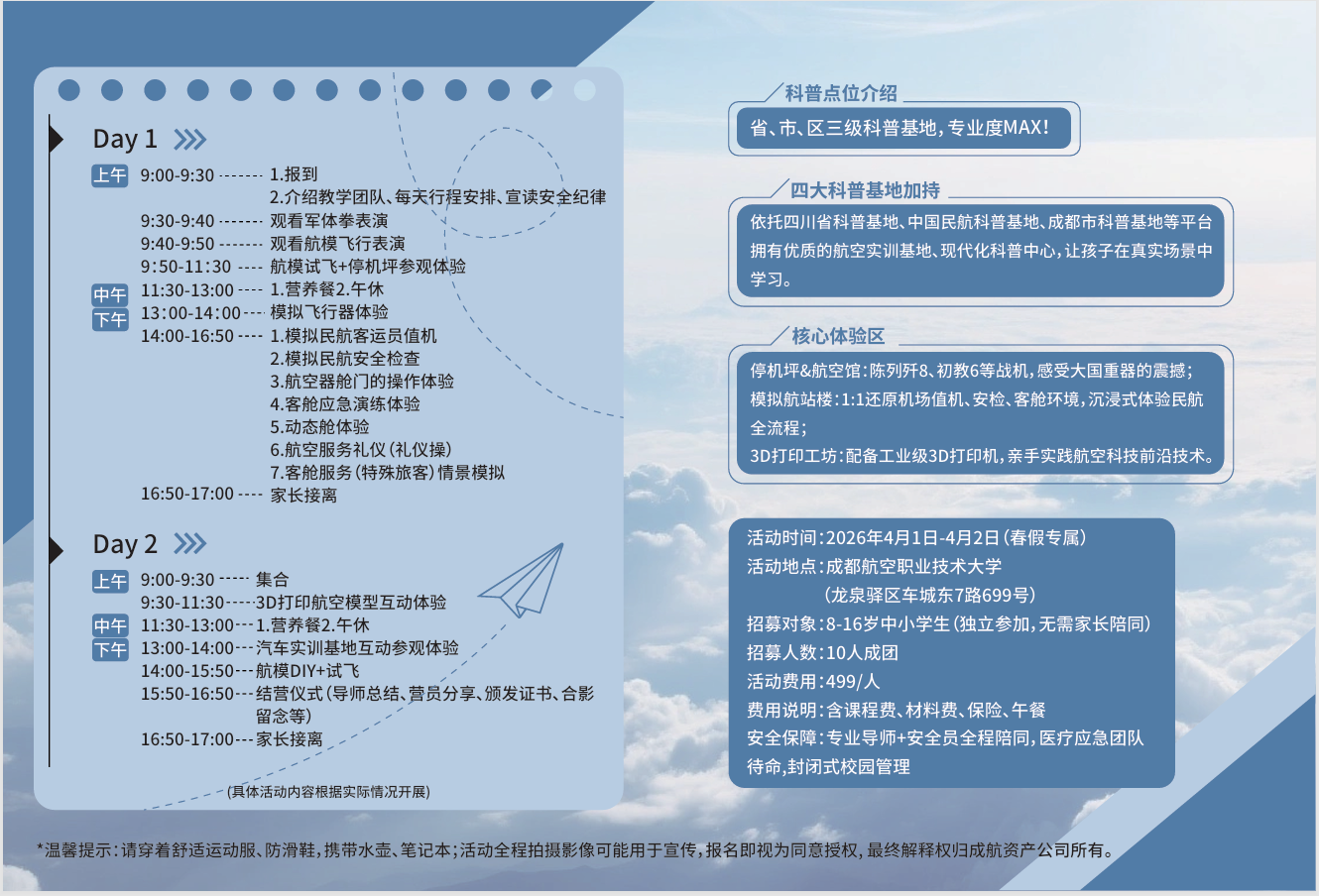 “蓝天梦想家”春季航空科普两日营招募啦!