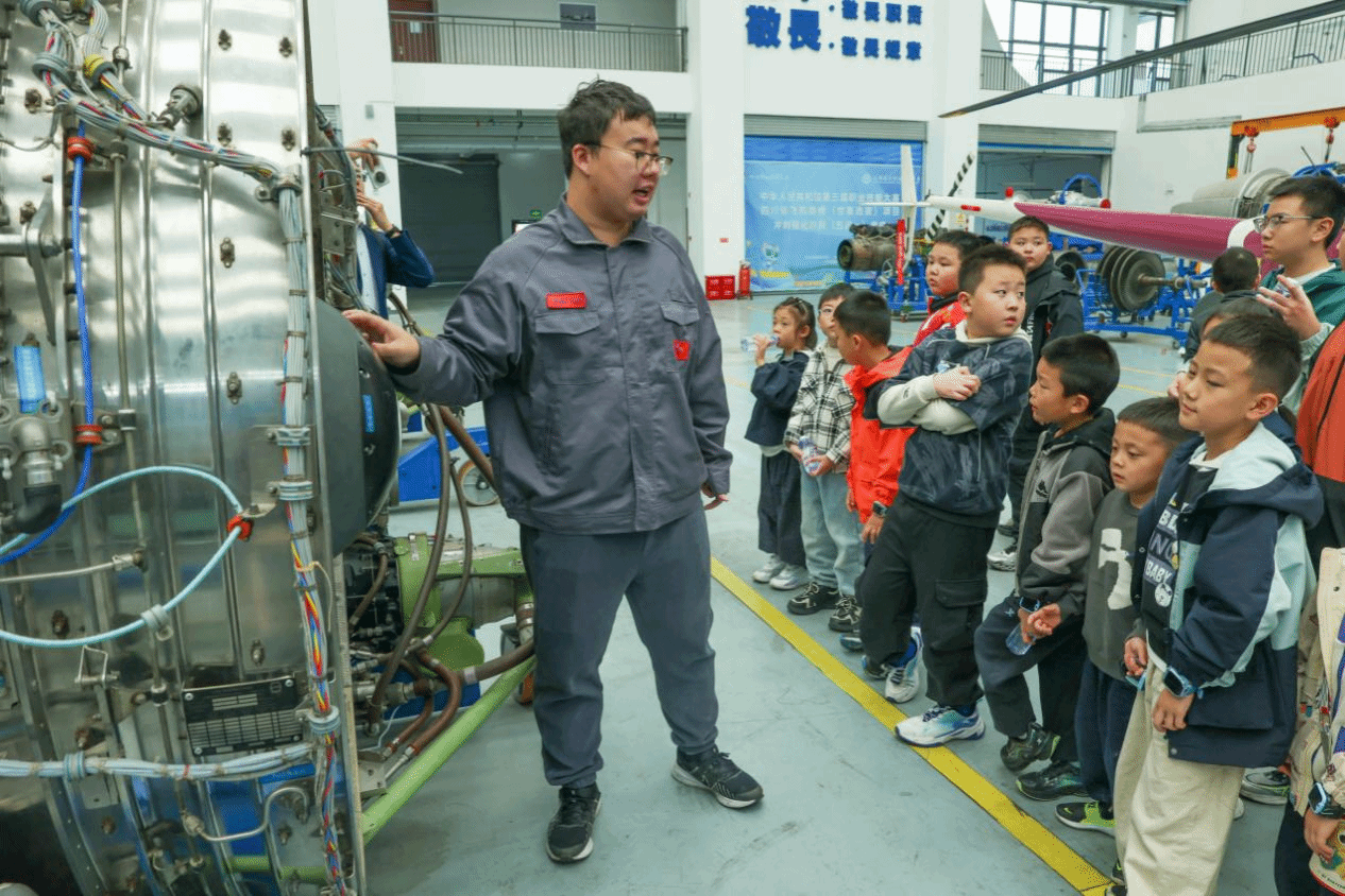 随后,学生们走进航空馆,参观航空发动机展区。通过对发动机结构、工作原理的详细讲解,孩子们直观认识到航空发动机作为飞机“心脏”的关键作用,对航空工业的精密性和复杂性有了初步认知。