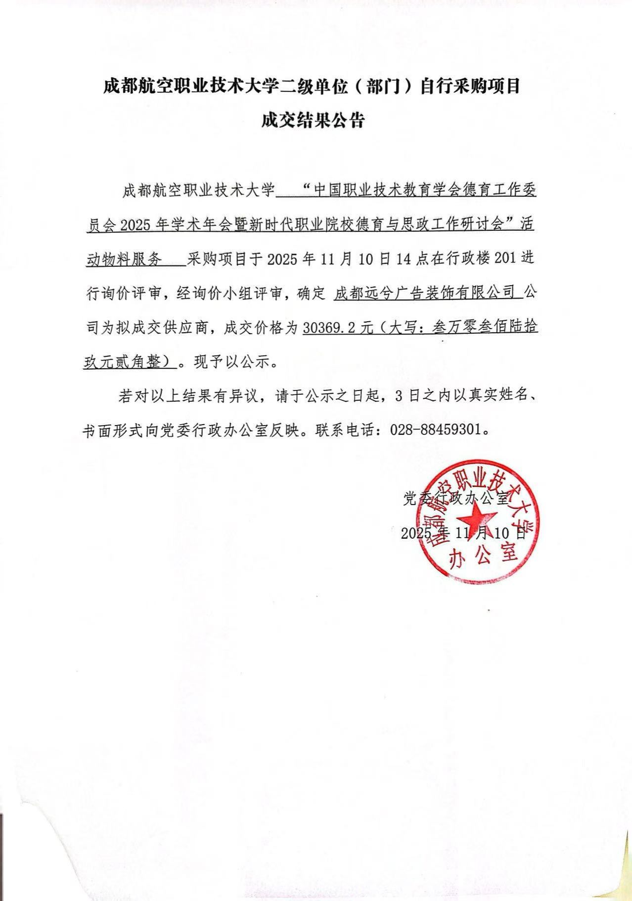 成都航空职业技术大学“中国职业技术教育学会德育工作委员会2025年学术年会暨新时代职业院校德育与思政工作研讨会”活动物料服务