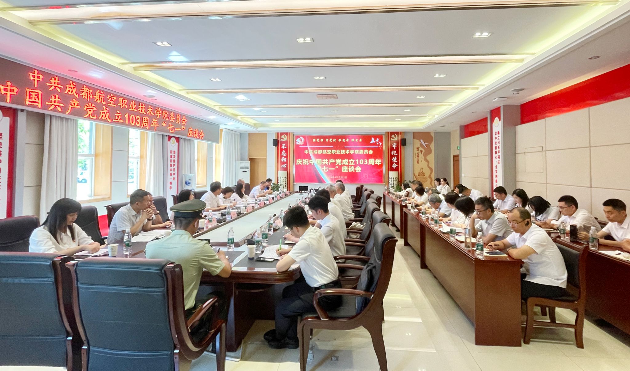 7月1日下午,成都航院庆祝中国共产党成立103周年座谈会在德胜楼3号会议室召开。学校党委委员、纪委委员,二级党组织负责人,离退休老党员代表,师生党员代表,先进集体、优秀个人代表,党群部门有关人员参加座谈会,党委副书记祝登义主持会议。