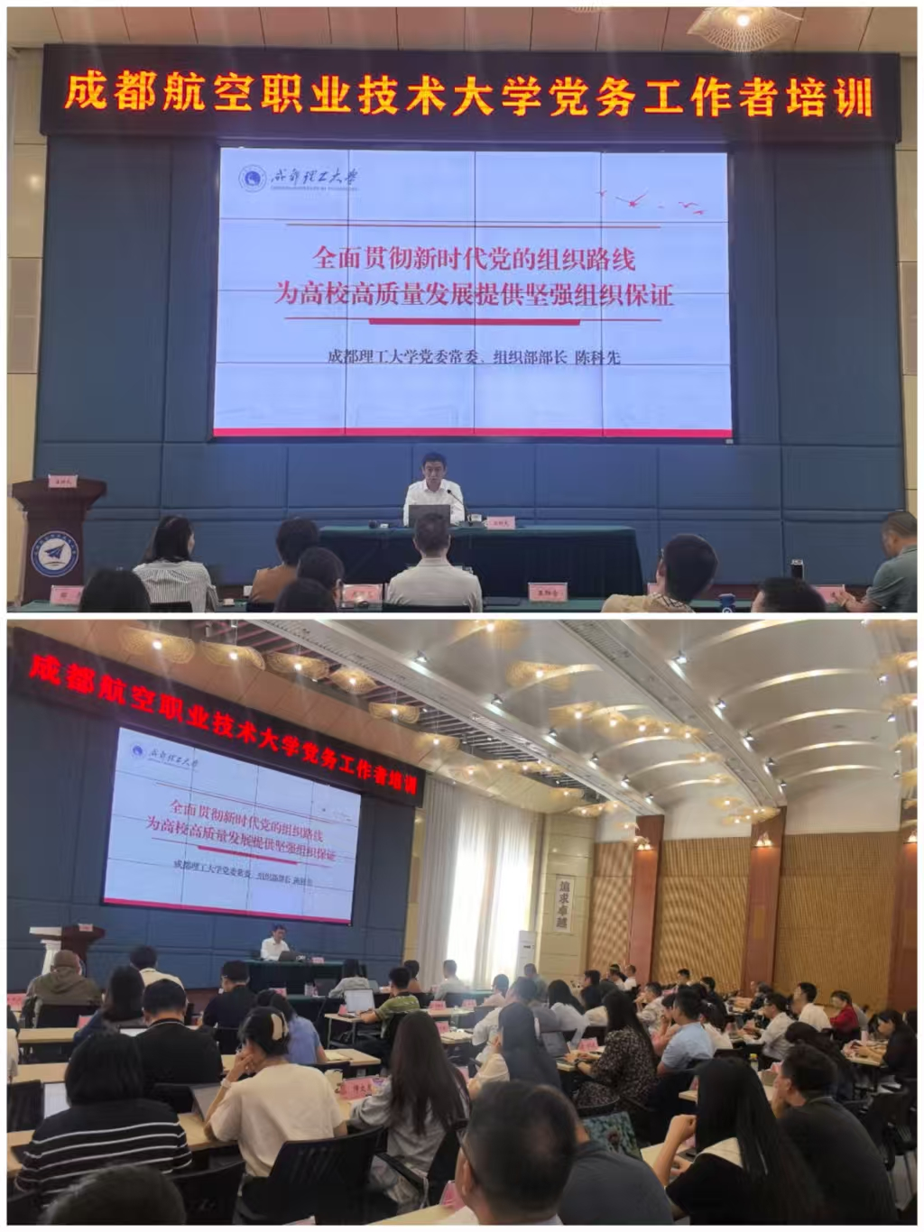为深入贯彻习近平总书记关于党的建设的重要思想,全面落实新时代党的组织路线,着力锻造高素质专业化党务工作队伍,9月24日,学校邀请成都理工大学党委组织部部长陈科先作《全面贯彻新时代党的组织路线,为高校高质量发展提供坚强组织保证》为主题的专题讲座。学校各二级党组织书记、党支部书记、专职组织员等近90人参加培训。