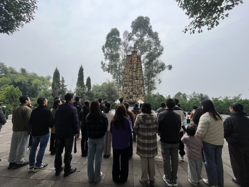 2025年11月22日,成都航空职业技术大学工程实训中心党总支组织全体党员,在党组织工作负责人李战胜带领下,赴蒲江县西来镇成都战役纪念馆及烈士陵园,开展以“汲取红色力量,勇担育人使命”为主题的教育实践活动。在初冬肃穆的氛围中,全体党员首先步入成都战役纪念馆,在讲解员引导下参观了馆内陈列的200余件历史文物与珍贵图片,系统回顾了解放军征战西南、决战川西、解放成都的英勇历程。随后,全体党员前往烈士陵园,在庄严肃穆的纪念碑前举行献花仪式,深切缅怀革命先烈。活动最后,党组织工作负责人李战胜作总结讲话,强调要从红色历史中汲取精神力量,践行育人使命。