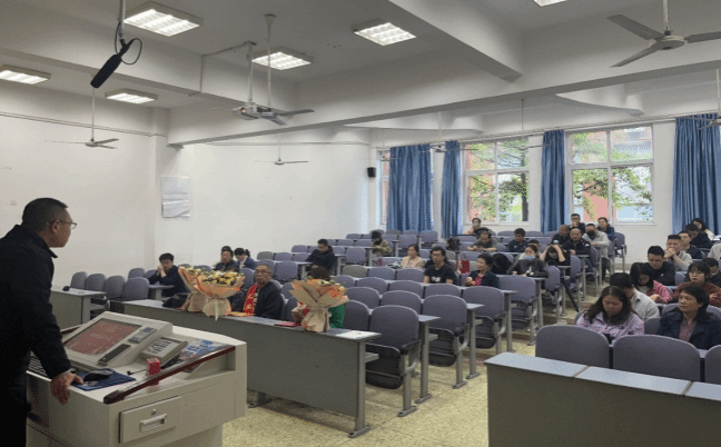 郑金辉主任代表中心师生向荣休教师献上了最崇高的敬意与最美好的祝福。他代表部门对荣休老师多年辛勤的付出以及为学校的发展做出的贡献表示由衷的敬意和衷心的感谢!同时,他还鼓励青年教职工们应当积累前辈们在过去工作中的经验,将宝贵的精神财富传承好、发扬好,为学校的建设贡献自己的力量。
