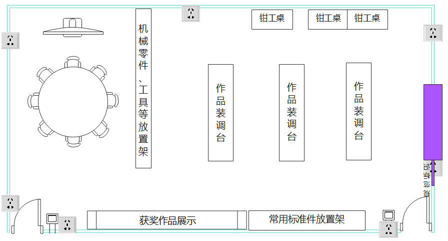 机械创新实验室占地面积约200m2,配备了智慧屏幕、会议桌、电工桌、工作桌等设施,同时置物架摆放着各种实验器材、器件和工具,为创新设计制作提供便利。实验室旨在为机械类创新比赛、创新创业作品的设计组装以及获奖作品的展示提供场所和支持,为《机械设计基础》课程创新设计实验提供案例支持和平台支持。目前实验室团队主要参加了全国大学生机械创新设计大赛、大学生创新创业大赛、“挑战杯”中国大学生创业计划竞赛等赛项。通过参与这些比赛,学生将获得宝贵的创新经验,并在团队合作、项目管理和创新设计等方面得到全面锻炼,为未来的工程实践和创业奠定坚实基础。