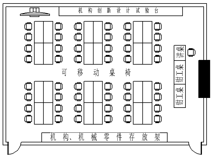 机械设计演示教室占地面积约120m2,拥有座位48个,配备了各种机构、机械零件、减速器和机构运动方案创新试验台等设施,是《机械设计基础》课程的核心理实一体化教室之一。学生在机械设计演示教室中,可以利用提供的材料和工具进行机构制作、机构创新设计及试验、机械零件设计制作及装配调试和减速器结构演示及拆装等实践教学活动。机械设计演示教室旨在将理论与实践有机结合,提升学生实践能力和创新思维,培养学生分析问题、解决问题的能力。