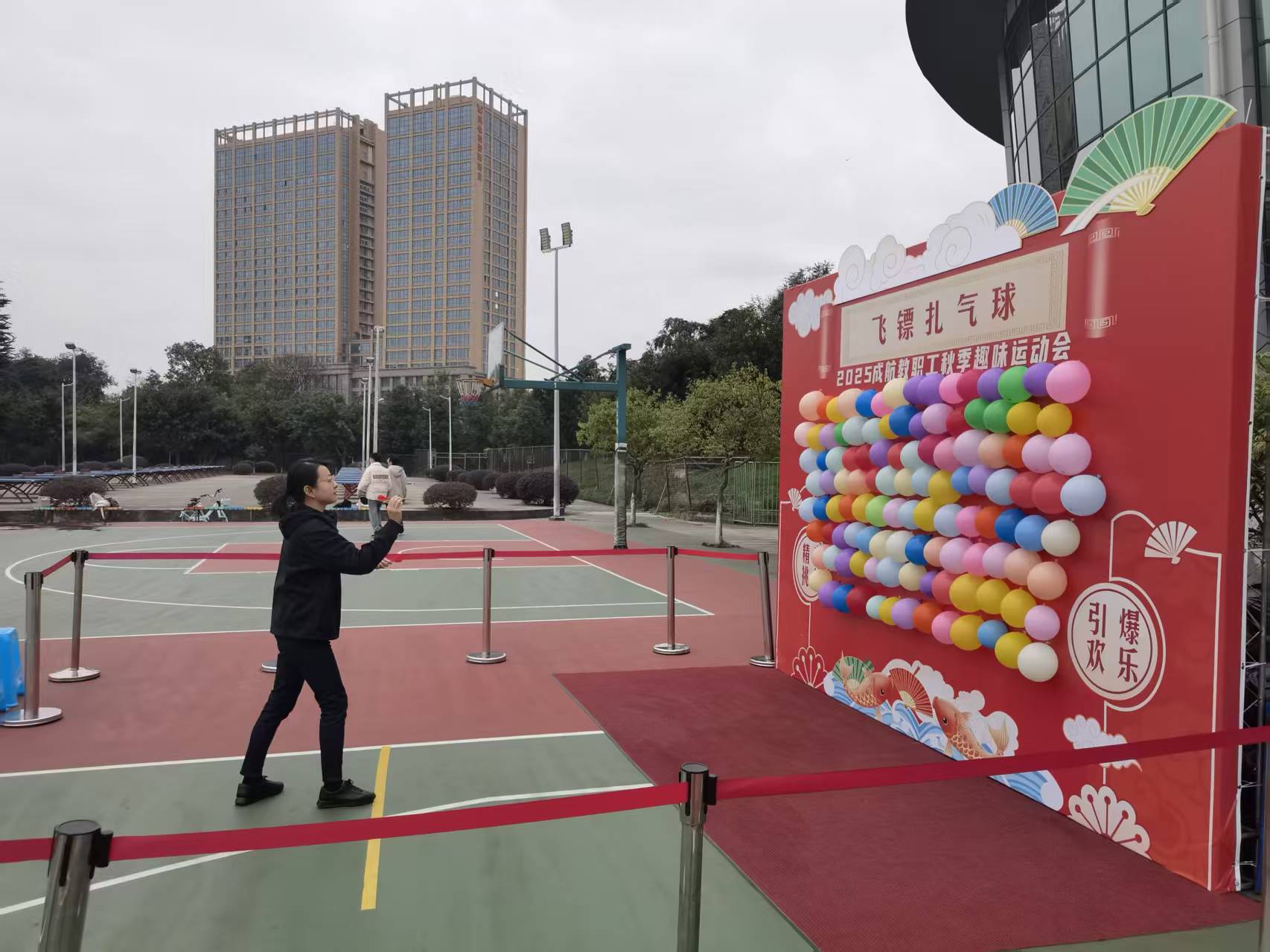 本次活动由校工会主办,航空装备学院工会、建筑学院工会、基础教学部工会、后勤工会等四个二级工会承办。今年的活动本着“安全、节俭、有趣”的原则,创新设置“精益求精·塔台指引”、“羽您同行”羽毛球混合双打、飞镖扎气球、平衡大师、双手夹彩球等活动项目。赛场上,教职工们个个精神饱满、斗志昂扬,在比赛中相互鼓励、相互支持,不仅展现了出色的个人体能,更彰显了团队协作的力量和策略规划的智慧,精彩演绎了我校教职工们团队合作、坚韧不拔、朝气蓬勃的精神风貌。加油声、欢笑声此起彼伏,各个赛场洋溢着轻松愉悦的氛围。