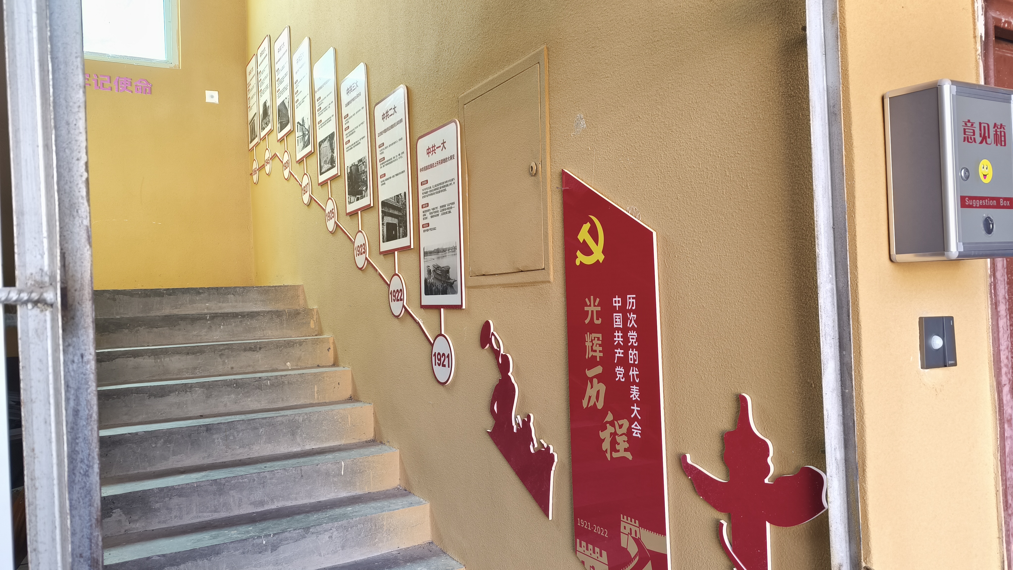 党群活动中心的翻新改造,为后续进行党员活动阵地改造提供了良好的基础,克藏村驻村工作队协同克藏党支部在楼梯间专门设计了中国共产党光辉历程展示区,全面展现了我党从“中共一大”至“中共二十大”的光荣历史。