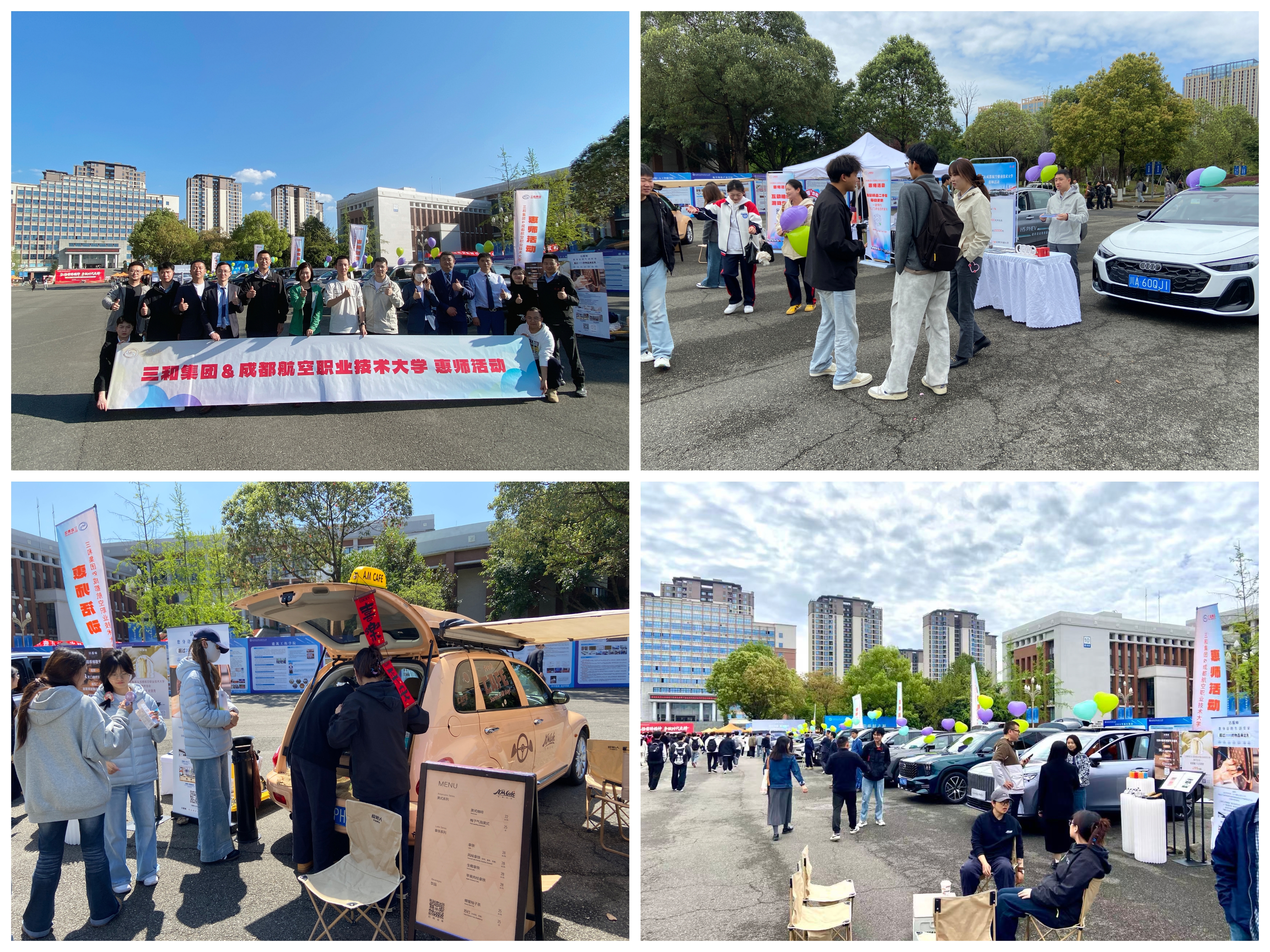 活动现场暖意融融、人气高涨。三和集团携旗下 8 大汽车量产品牌、15 辆精品展车集中亮相,为教职工提供直观的车型体验、专业咨询服务。现场特别设置博物馆咖啡车,带来特色冷餐茶歇与老爷车咖啡服务,在沉浸式汽车文化体验中,让教职工感受别样温馨。