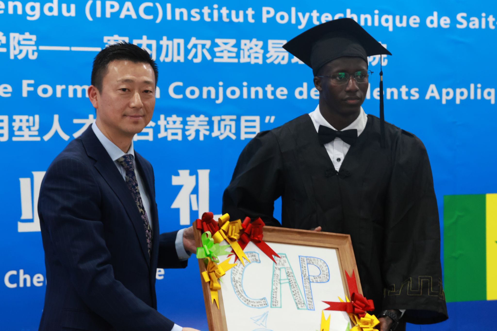 2025年1月7日下午,成都航空职业技术学院——塞内加尔圣路易理工学院“未来非洲——中非应用型人才联合培养”项目毕业典礼在学校博学楼8楼隆重举行。成都航院副院长熊熙、塞内加尔驻华大使馆阿布·尼昂(Abou NIANG)、塞内加尔圣路易理工学院院长安德烈·法伊(Andre FAYE )出席典礼并致辞。