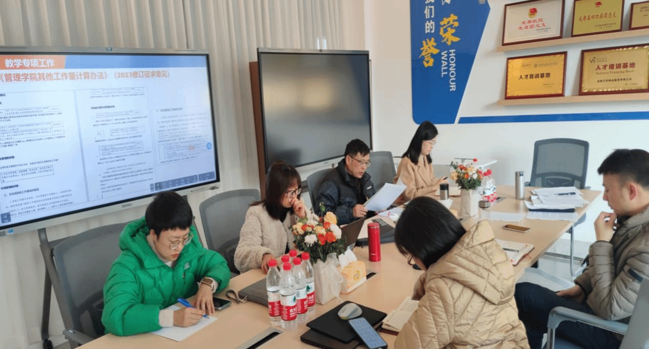 2023年12月26日,管理学院党总支在504会议室举行党总支会议,进行书记述党建、中心组集体学习、主题研讨。会议由涂云友书记主持,总支7名委员参加。