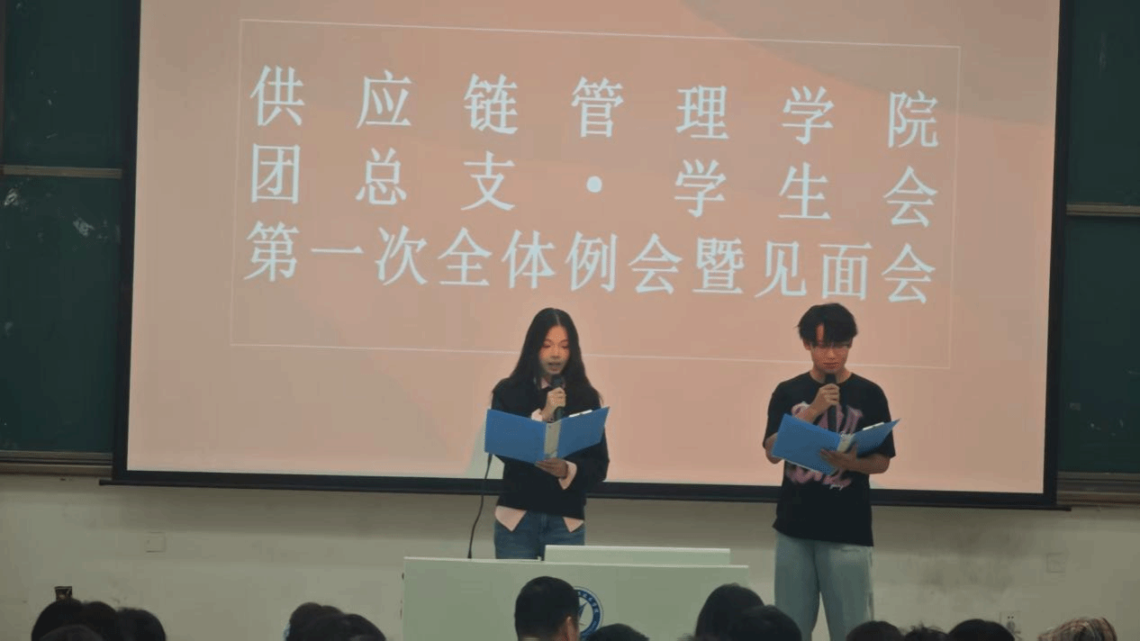 会议在充满专业特色的氛围中拉开帷幕。主持人以“供应链”为喻,巧妙地将新成员的加入比作组织运行中的“新鲜血液注入”,强调这将为学院发展带来更强的“运转效能”与创新活力。