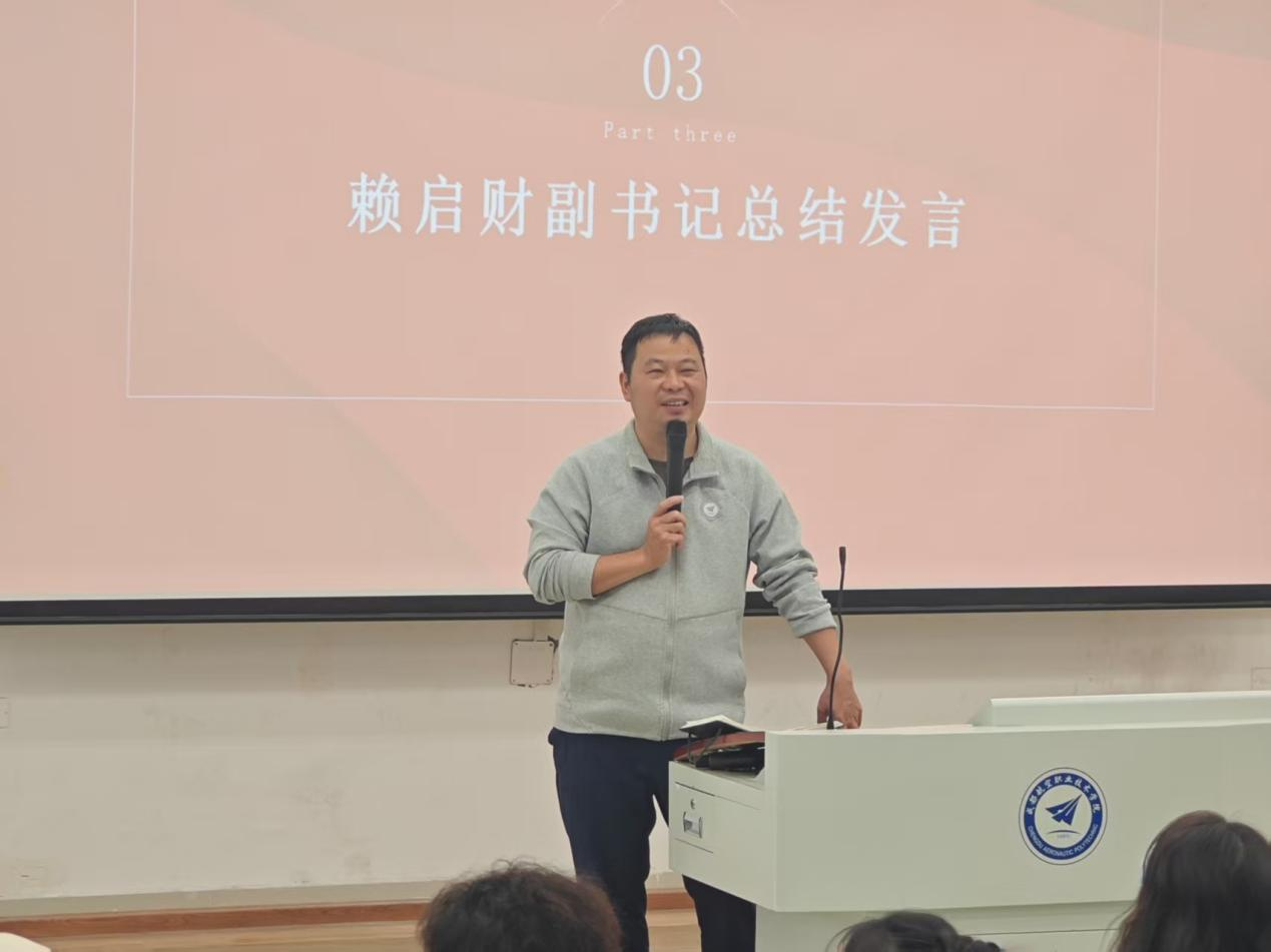 会议最后,由学生工作负责人赖启财作总结发言。他对本次会议的顺利召开表示祝贺,并对全体成员提出三点希望:一是要坚定理想信念,树立服务意识;二是要注重学习与实践相结合,不断提升综合素质;三是要团结协作,共同推动学院团学工作再上新台阶。