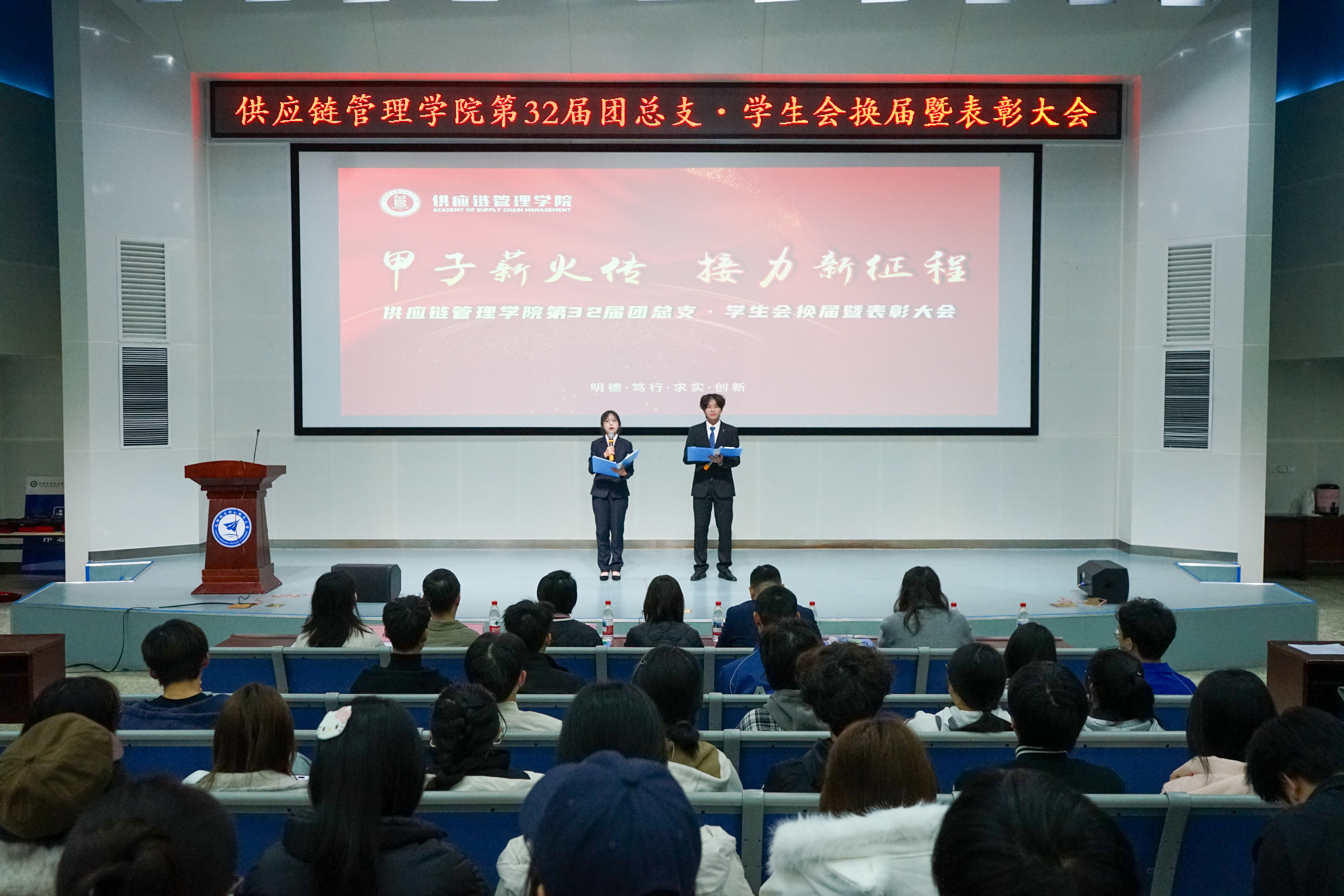 11月11日下午16:00,供应链管理学院“甲子薪火传,接力新征程”第32届团总支·学生会换届暨表彰大会在博学楼笃行报告厅举行。学院负责人付涛、党建工作负责人李溦、学生工作负责人赖启财、专职组织员隆利忠、团总支书记李梅、学生会指导老师鲜府芸等嘉宾,以及各兄弟学院团学代表、供应链管理学院大一、大二全体学生参会,大会由李浩铭、李维晴主持。