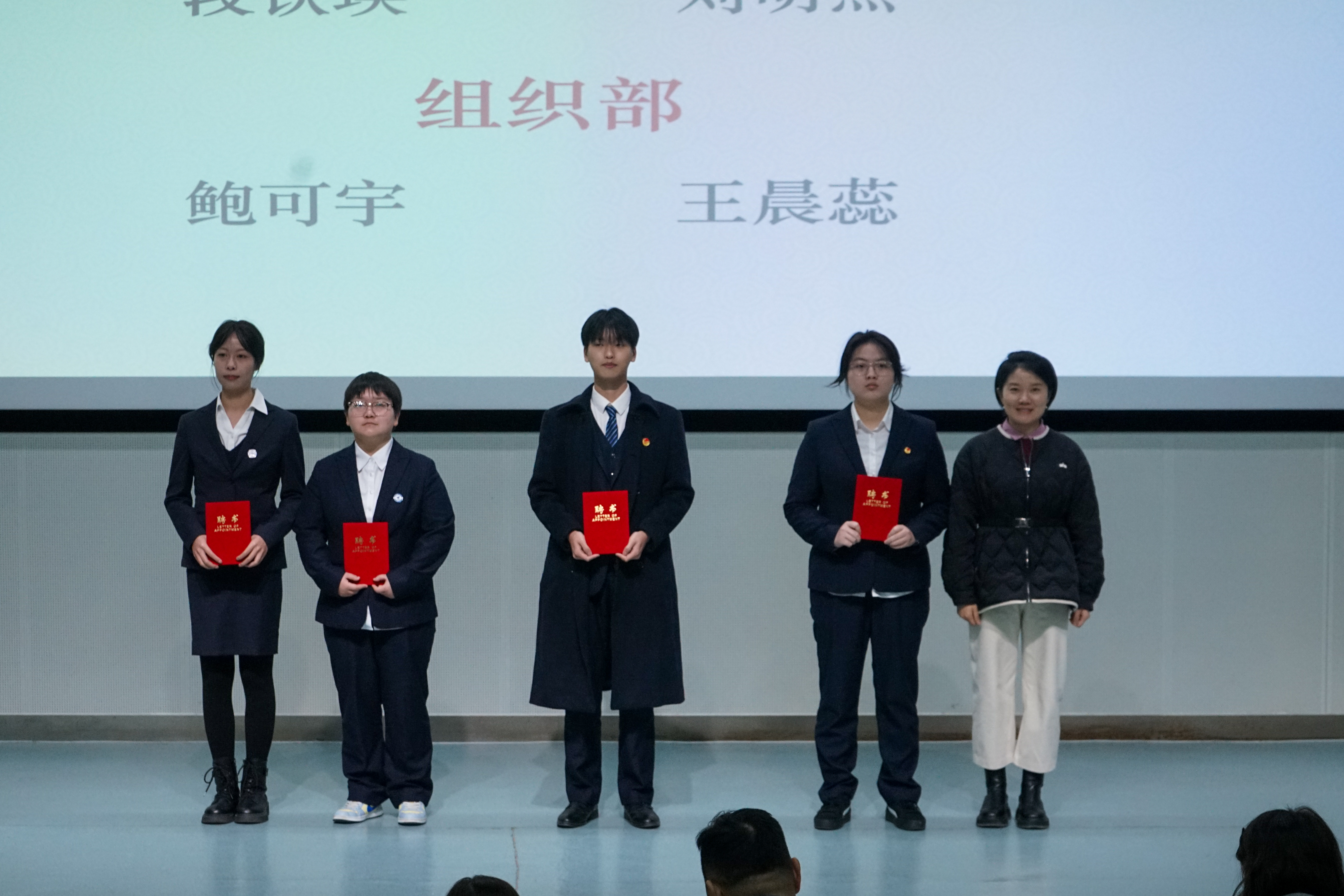 第31届团总支副书记何倩倩、学生会主席邹国平依次述职,汇报任期工作并分享成长感悟。随后,大会向团总支·学生会干部颁发聘书,完成责任与使命的交接。