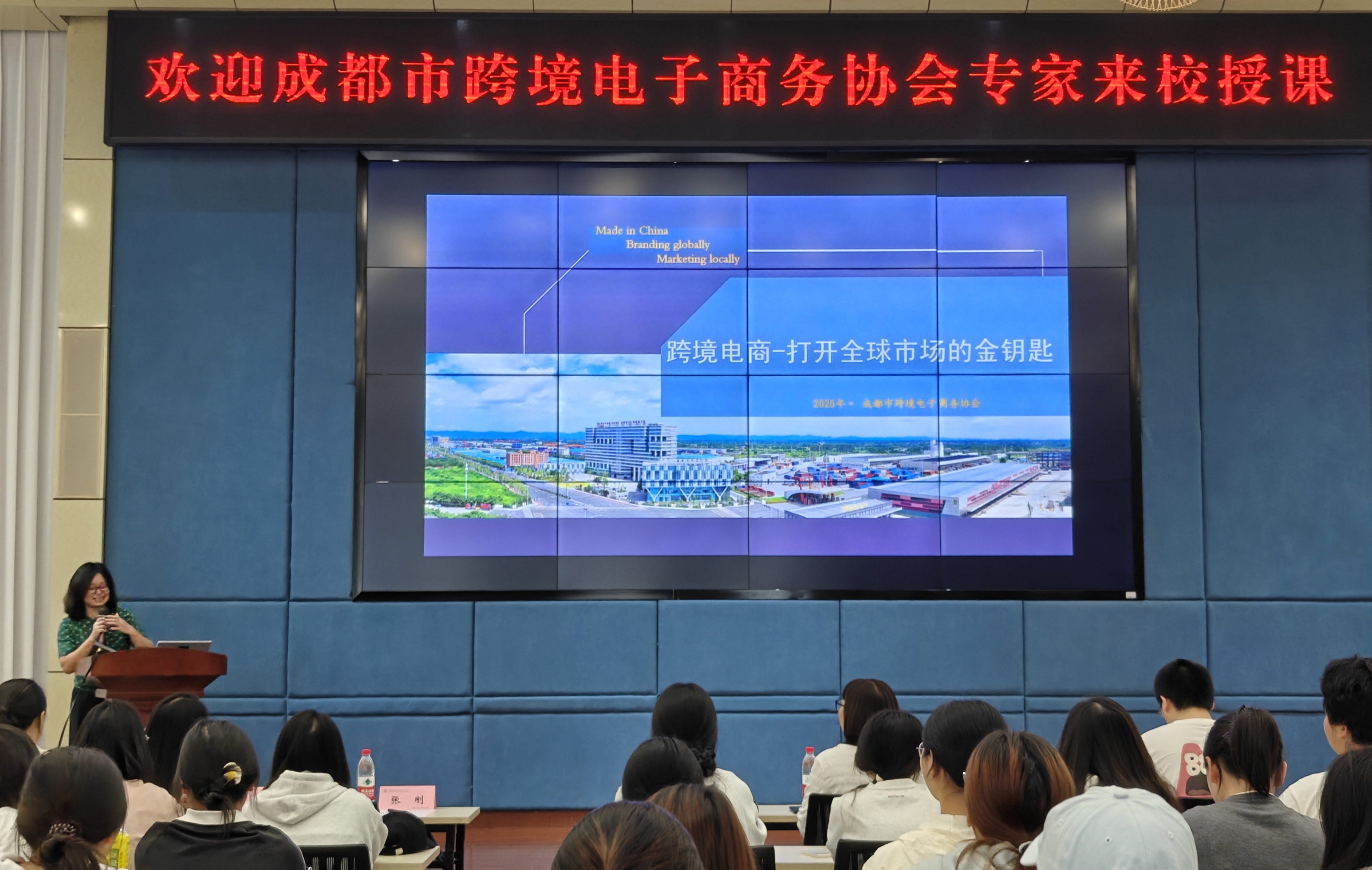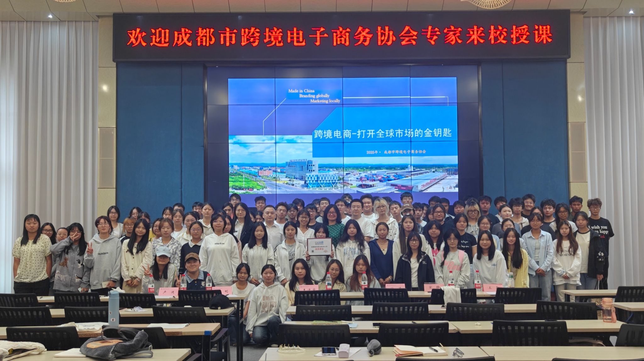 活动分两部分开展。首先是合作授牌仪式,标志双方在共建教育、协同育人上进入实质性阶段,为后续校企资源共享、联合培养人才奠定基础。随后是“行业导师进课堂”环节,宋静以 “跨境电商——打开全球市场的金钥匙” 为主题授课。她深入浅出分析我国跨境电商发展态势,结合成都本地成功案例,生动阐述跨境电商在推动产业出海、促进区域经济发展中的重要作用。付涛寄语2025级跨境电子商务新生,鼓励同学们抓住行业机遇,夯实专业基础,内外兼修,成长为兼具国际视野与实战能力的优秀人才。