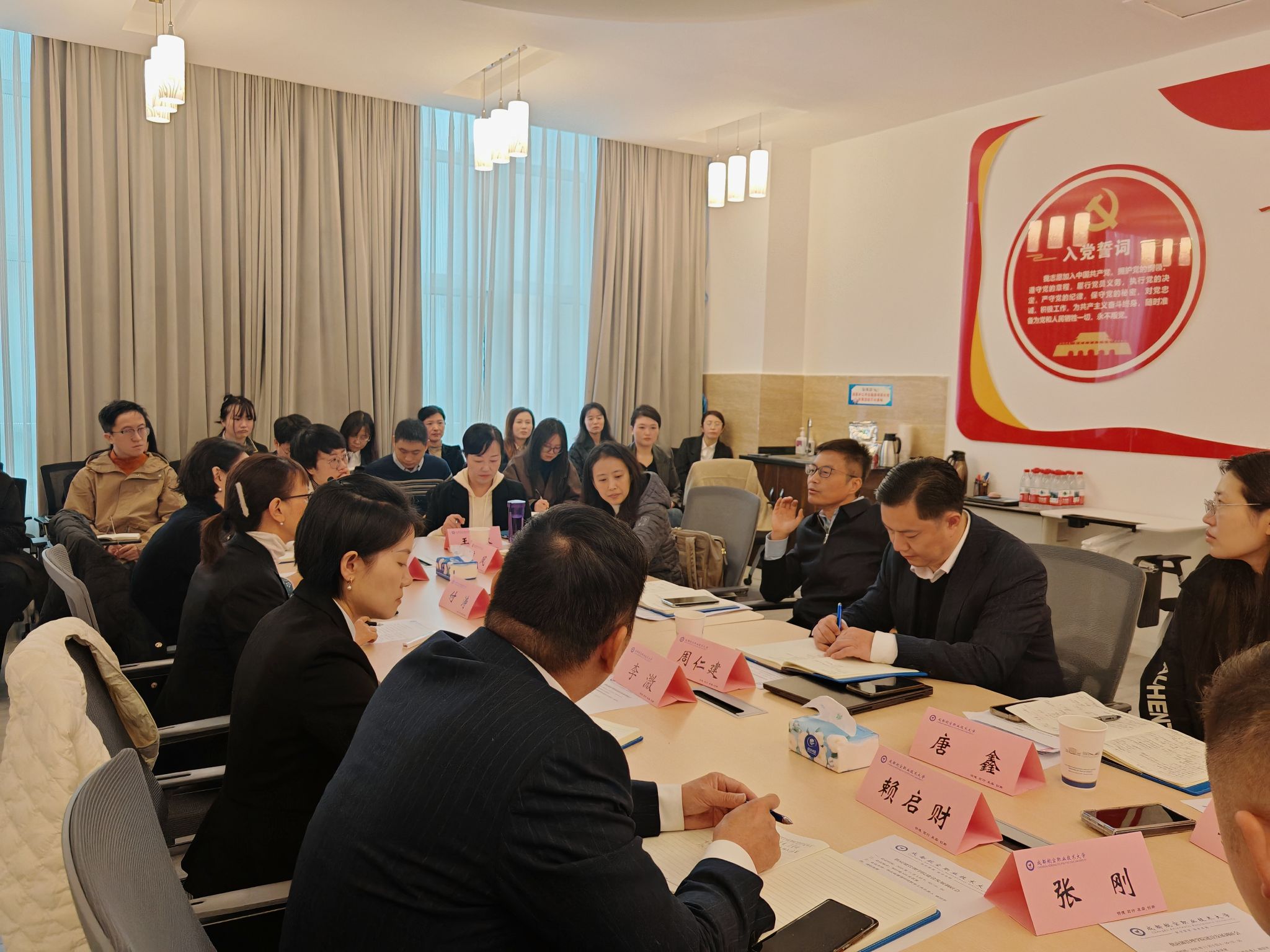 首先,付涛汇报了供应链管理学院现状以及未来发展思路,周仁建就学院的科研工作给予了中肯指导,康凤建议学院应以数字化升级为契机,加强教学中的数字化技术应用,要关注专业内涵建设。