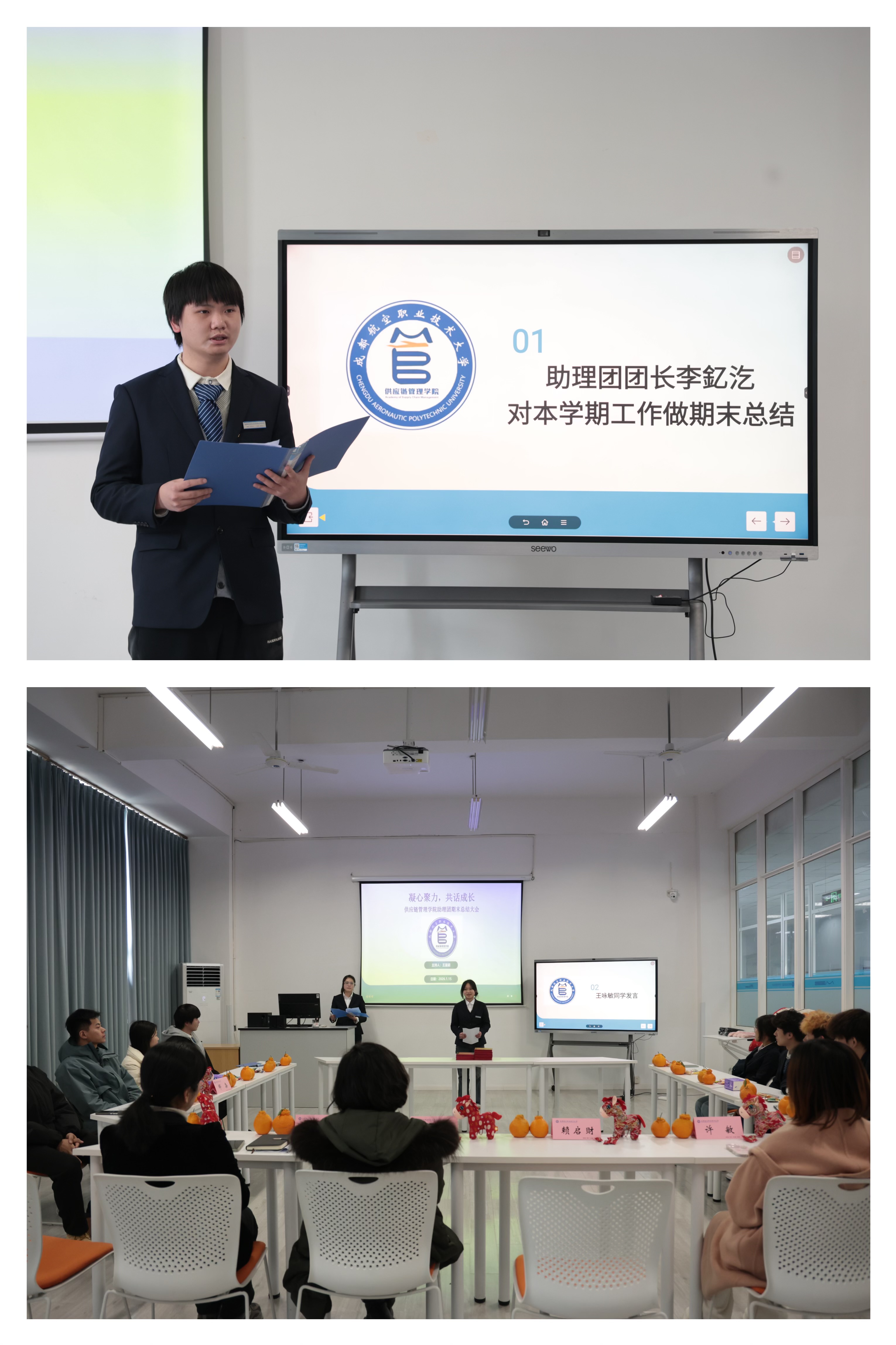 1月15日下午,供应链管理学院于知行楼509A教室召开2025-2026学年第一学期助理团总结表彰大会。学院教学负责人杨羽宇、学生工作负责人赖启财出席会议,助理团指导老师汪丽丽、许敏及全体成员共同与会,回顾学期工作,表彰先进典型,共话团队发展。