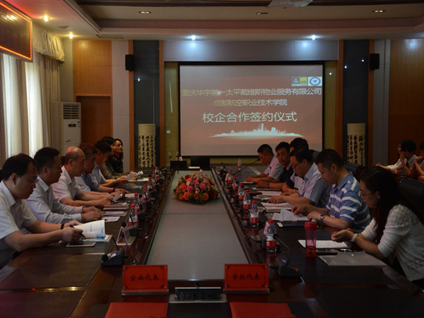 2018年5月29日下午13点,成都航空职业技术学院--重庆华宇第一太平戴维斯物业服务集团有限公司校企合作签约仪式在德胜楼3号会议室隆重举行。
