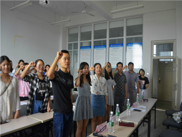 赖老师对39名预备党员予以肯定,相信大家能够如期转正,但也提出了三点要求:1,勿忘母校、老师、专业;2,时刻记住自己的党员身份,要做与自己身份符合的事;3,在工作学习中对自己有更高的要求,更高的标准。黄老师表示:愿大家在以后的工作中,保有党员的初心,为党组织开枝散叶。余书记说道:1,成绩只能代表过去,今天是一个新的开始,青春是一个奋斗的年华,牢记自己党员身份,学习“四个意识”(政治、大局、核心、看齐),要学会辨别信息的性质、高远,踏实做事;2,临近毕业,善始善终,配合好老师的工作。隆老师也提到:1,要为老师为同学付出作出贡献,2,要对工作积极主动向大体看齐,并肯定了大家在预备期的工作,且予以表扬;3,告诫39名预备党员,目前对党员审核日渐严格,愿离校后大家继续保持,在各自的岗位上奉献出自己的力量。随后,正式党员发表意见并投票,39名预备党员按期转正。接下来,39名预备党员面对党旗进行宣誓。