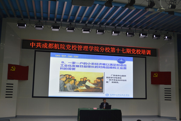 为了加强同学们对党的了解,以及对新中国的认识和了解。2017年10月22日下午6时30分于博学楼学术报告厅开展了中共成都航院党校管理学院分校第十七期党校第五次培训。管理学院学生支部书记隆利忠、17级全体新生参加了培训。讲座由汽车工程学院党总支副书记王阳合主讲。