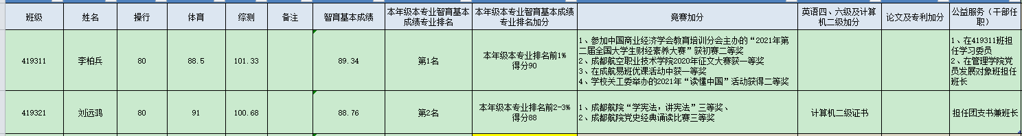 根据《成都航院国家奖助学金管理办法》的要求,按照《2020年成都航院国家奖学金评比细则》,经本人申报、班级推荐、学生工作领导小组集体审议并开展评选等环节综合评审,拟推荐419311李柏兵、419321刘远鸿同学申报2020-2021学年国家奖学金,现予以公示。
