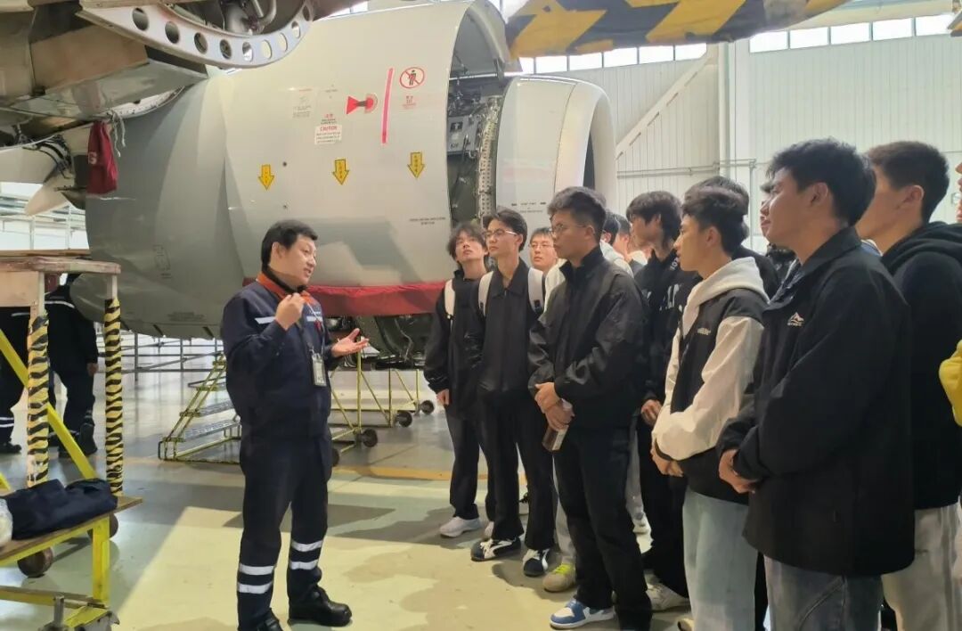 为深化产教融合,协同育人,助力学生成长成才,10月28日,成都航空职业技术大学航空维修产业学院教学负责人葛剑带领飞行器维修工程技术、航空动力装置维修技术两个“本科卓越计划实验班”在内的50余名师生,走进四川飞机维修工程有限公司(以下简称“川维”),开展沉浸式参观学习活动。此行旨在通过校企协同育人,让新生了解维修行业,为学生未来的职业发展规划提供最直观的指引。