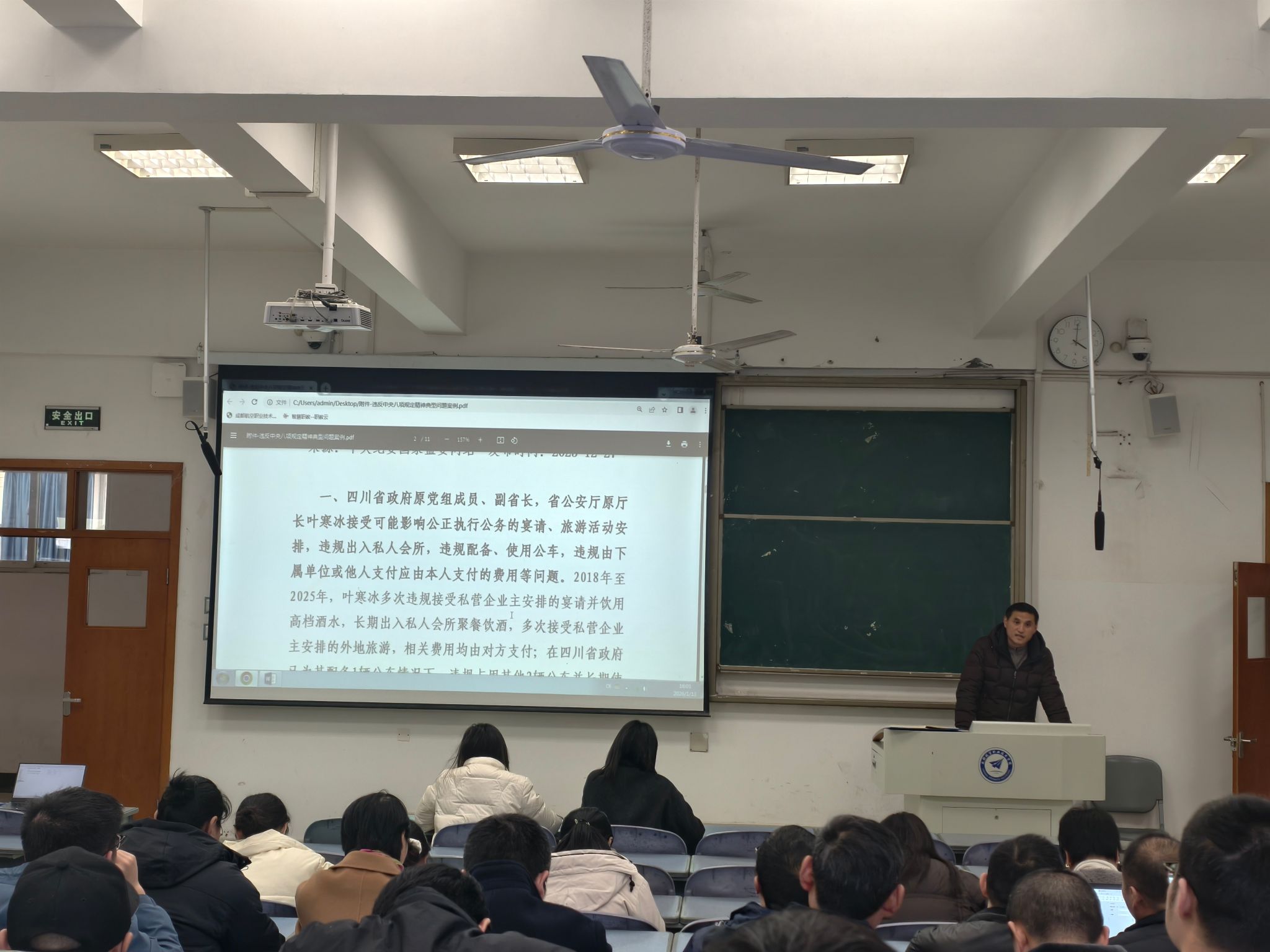 1月13日,航空维修产业学院党委组织开展违反中央八项规定精神典型案例警示教育学习,旨在通过剖析典型案例,强化全体教师的纪律意识与责任担当,教育引导大家以案为鉴,常态长效深入落实中央八项规定精神,严防“四风”问题反弹回潮,营造风清气正的校园政治生态。本次学习由航空维修产业学院纪委书记葛剑领学,全体教职工参会。