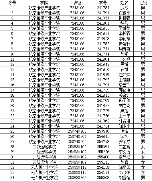 本次招募采取“定向选拔”的方式,根据承办学院——航空维修产业学院定向选拔标准以及赛事要求,重点选拔具备相关经验和专业背景的优秀志愿者,最终确定34名同学正式入选,将为大赛提供全流程志愿服务,入选名单公示如下,如有异议请于1月26日前到尚学楼216齐卉老师处反馈。