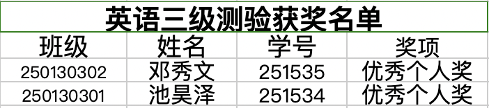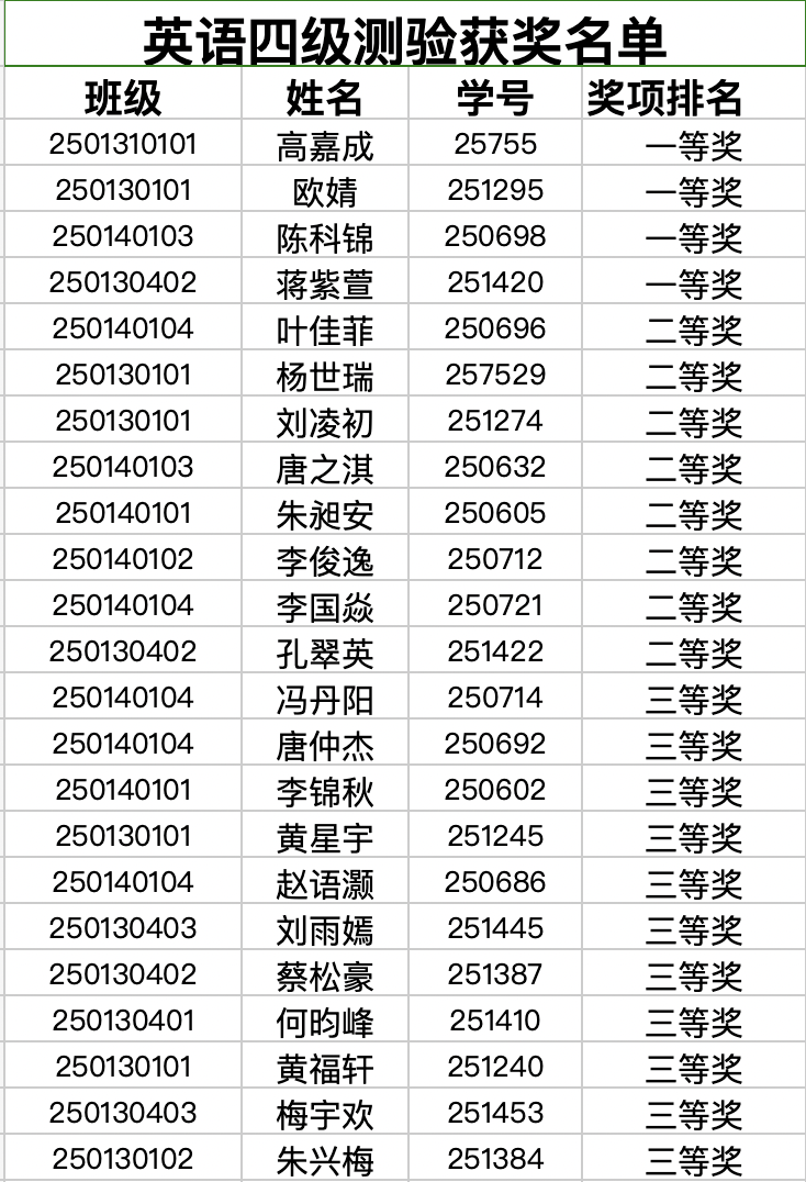 测验获奖名单公布: