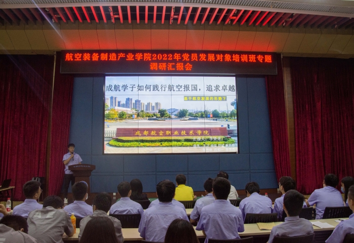 6月17日晚6点,航空装备制造产业学院在图书馆三楼国际会议厅开展党员发展对象培训班专题调研汇报会,航空装备制造产业学院党总支书记刘铁、党总支副书记白凤光、学生党支部书记范豫鲁老师以及各党员发展对象参加了此次汇报会,会议由培训班班长苗伟同学主持。