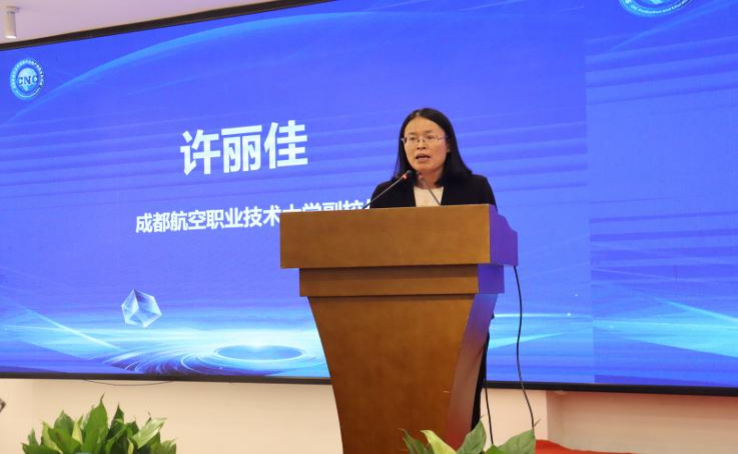 开幕式上,成都航空职业技术大学副校长许丽佳代表承办单位在致辞,她表示,本次会议是推动产教深度融合的重要平台,希望各方携手共进,为高端装备制造业人才培养注入新动能。