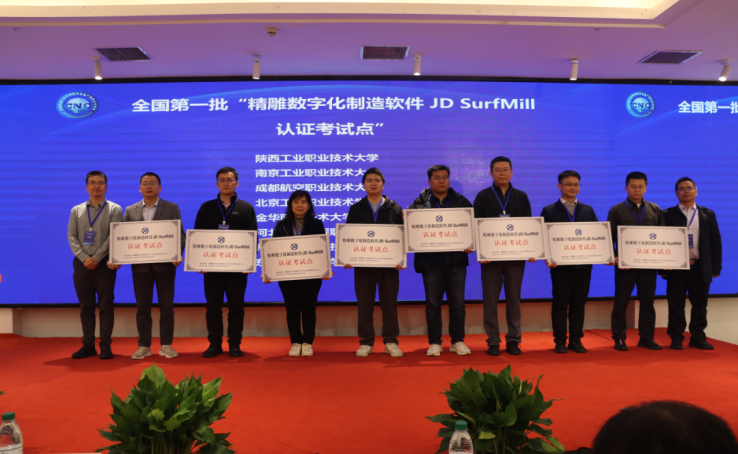 会议举行了全国第一批“精雕数字化制造软件JDSurfMill认证考试点”授牌仪式。陕西工业职业技术大学、南京工业职业技术大学、成都航空职业技术大学等15家单位获批成为认证考试点,旨在推动高技能人才认证标准化建设。