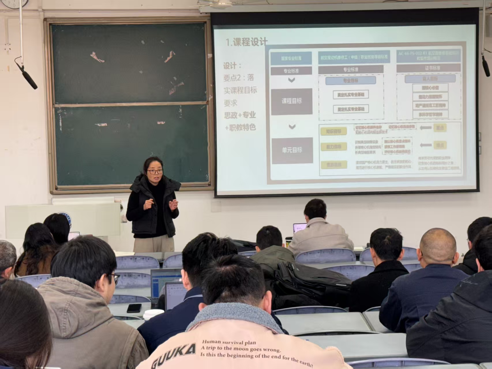 第二场培训以“职业教育学习成果国际互认”为主题,由学院副院长张波担任主讲。他详细解读了《职业教育学习成果国际互认方案》的背景、框架与实施路径,强调了在全球化背景下,推动职业教育标准互通、学习成果互认对于提升技术技能人才国际竞争力的重要意义。结合学院实际,他重点介绍了我校当前主要在无人机、航空装备智能制造等重点领域开展的国际标准研制与课程开发工作,为学院相关专业对接国际标准、参与国际交流与合作指明了方向,激发了教师们投身职业教育国际化实践的热情。
