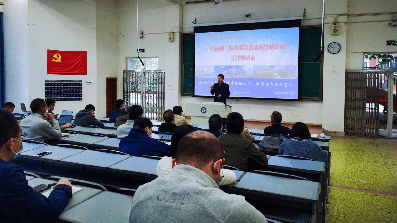 喜迎二十大,奋进新征程!新学期伊始,航空装备制造产业学院于10月11日在尚学楼2-118教室召开全院教师党员大会,会议由航空装备制造产业学院党总支书记王阳合主持,通过线上线下、集中分散相结合的方式开展。
