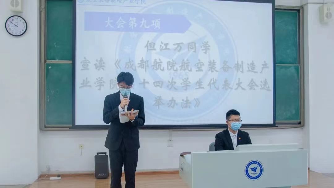 全体代表通过了有关事项和讨论了有关内容,以及听取第十三届学生委员会工作报告,审议了《航空装备制造产业学院学代会章程》《成都航空装备制造产业学院第十四次学生代表大会选举办法》《航空装备制造产业学院学生会章程》《装备学院班团一体化实施方案》《关于〈装备学院第十三届委员会工作报告〉的决议》。公平、公正、公开地投票选举产生了航空装备制造产业学院第十四届学生委员会委员。最后由刘洋浩宣布选举结果及当选委员名单。