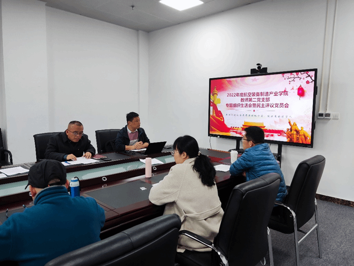 为深入学习贯彻党的二十大精神,坚持不懈用习近平新时代中国特色社会主义思想凝心铸魂,结合航空装备制造产业学院实际,三个教师党支部3月陆续开展了2022年度党支部专题组织生活会和做好民主评议党员工作。