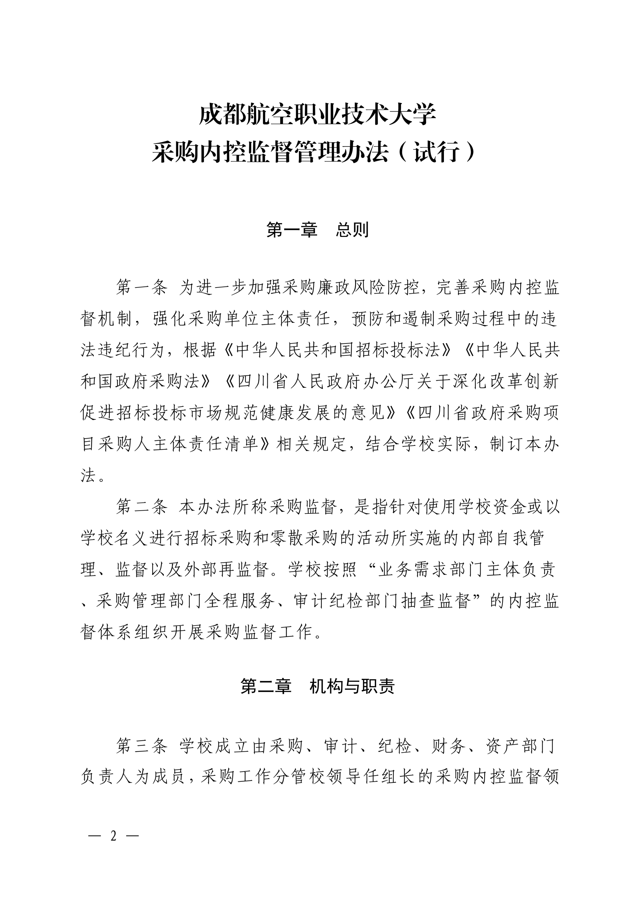 2025-073 关于印发《成都航空职业技术大学采购内控监督管理办法(试行)》的通知