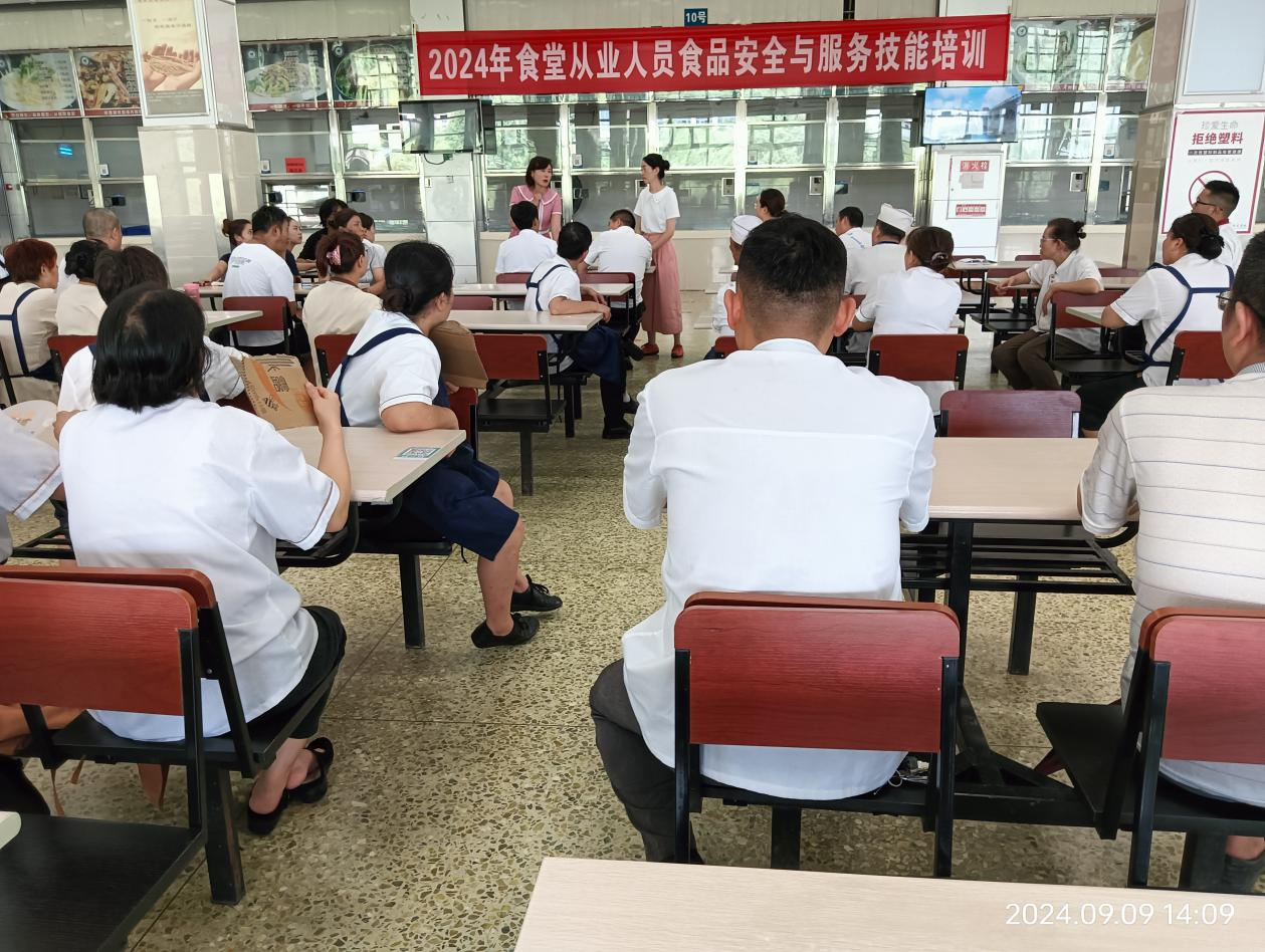 为扎实做好秋季学期开学餐饮服务保障工作,9月9日下午13:30,后勤服务总公司在学生一食堂二层召开了新学期饮食保障工作部署暨食品安全培训会。会议由后勤质量与安全监督办公室李琼主任(协管饮食工作)主持,全体食堂工作人员参会。