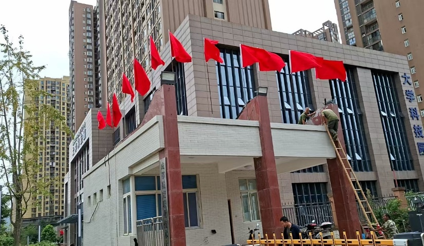 从校门、大道到楼顶,再到及时细致的维护,这些看似普通的工作,是后勤服务“环境育人”的生动实践。物业人以一周的精心筹备与默默付出,将爱国情怀具象为校园里随处可见的“中国红”,让师生在潜移默化中感受国家庆典的喜悦与庄严,也为祖国76周年华诞献上了一份质朴而真挚的祝福。