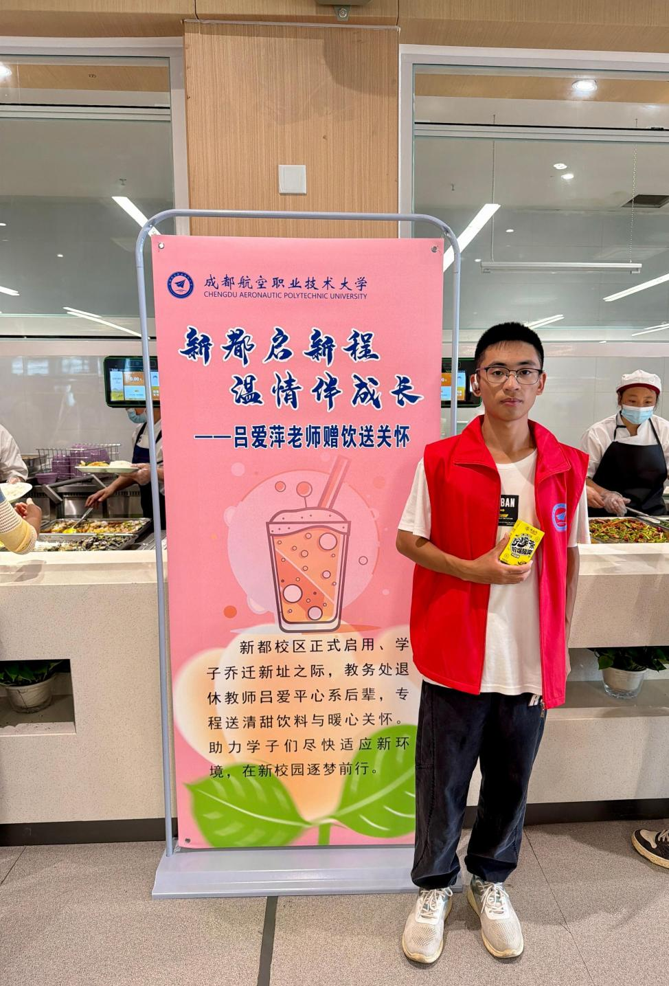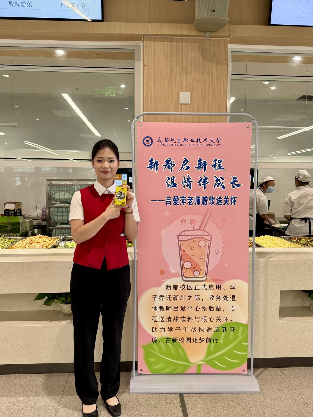 正当学子们沉浸在用餐愉悦中,另一份关怀悄然而至。教务处退休教师吕爱萍,虽告别三尺讲台,却始终牵挂后辈。得知新生乔迁,她特意筹备清甜饮料送至校区,嘱托食堂于餐食时段同步发放。当工作人员说明“这是吕爱萍老师的心意”,学子们笑意更浓,一手捧温热餐食、一手握清爽饮料,双倍温暖在心底扎根。