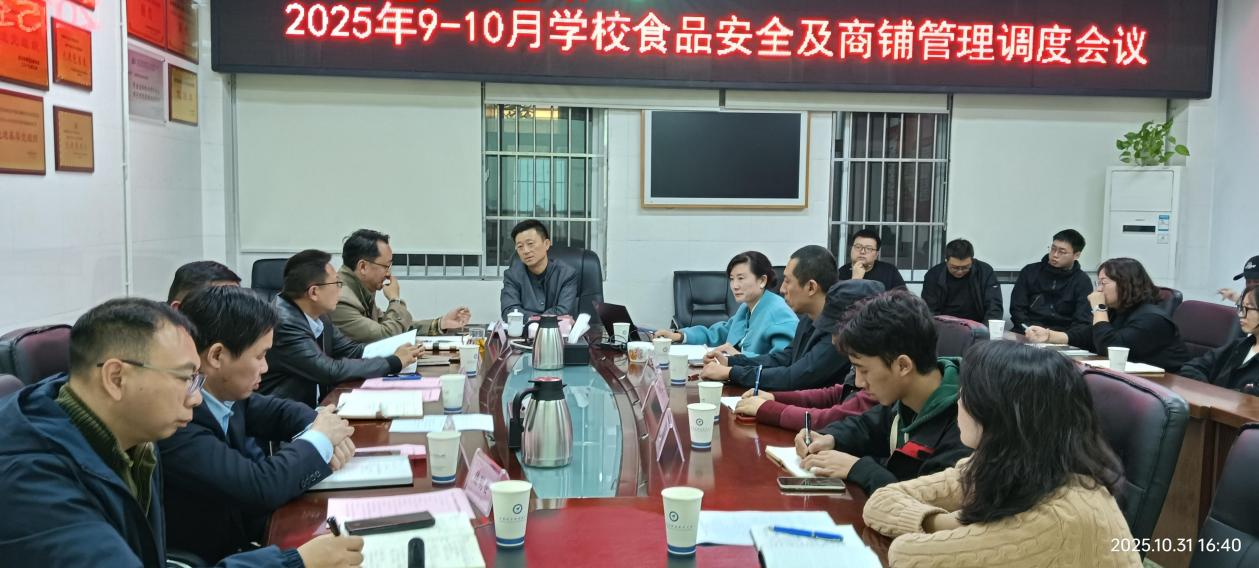 2025年10月31日下午,学校食品安全月调度及商铺安全管理季调度会议在后勤保障部会议室召开。会议紧扣“一校两区”投运以来的后勤保障实际,聚焦食品安全核心,总结前期工作、部署11月任务,推动校园安全与服务提质。副校长兼食品安全总监熊熙、学生代表、教职工代表、国有资产管理处、保卫处以及后勤保障部相关部门人员参会,会议由后勤保障部行政负责人杨琦主持。