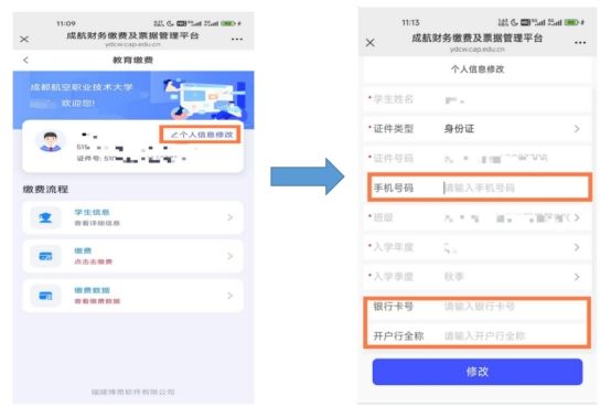 Step3:进行个人信息修改,准确填写银行卡号、开户行全称(必须填写开户行全称,否则会转账失败)。