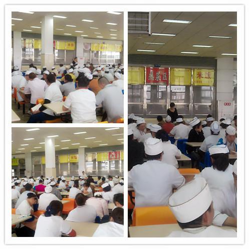 4月21日,饮食服务中心组织全体员工在学生一食堂二楼大厅召开了“2014年从业人员培训”启动会议,饮食服务中心经理李琼、副经理杨通出席会议。