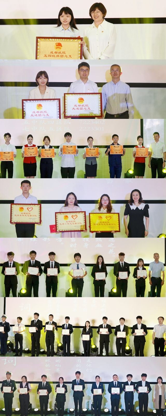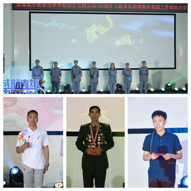 为深入学习宣传贯彻习近平总书记五四青年节对全国广大青年寄语精神,传承五四精神,赓续奋斗传统,5月7日下午,成都航空职业技术学院纪念五四运动105周年音乐团课暨共青团工作表彰大会在博学楼报告厅举行。成都航院党委书记陈小红、院长刘建超、副院长熊熙、纪委书记张洁出席大会,党委行政办公室、党委组织部、党委宣传统战部、党委学生工作部、招生就业处、工会、图书馆、团委等部门的负责同志,各二级学院党总支书记、副书记、团委委员、团总支书记、学生会指导教师,以及550余名团员青年代表参加了本次大会。
