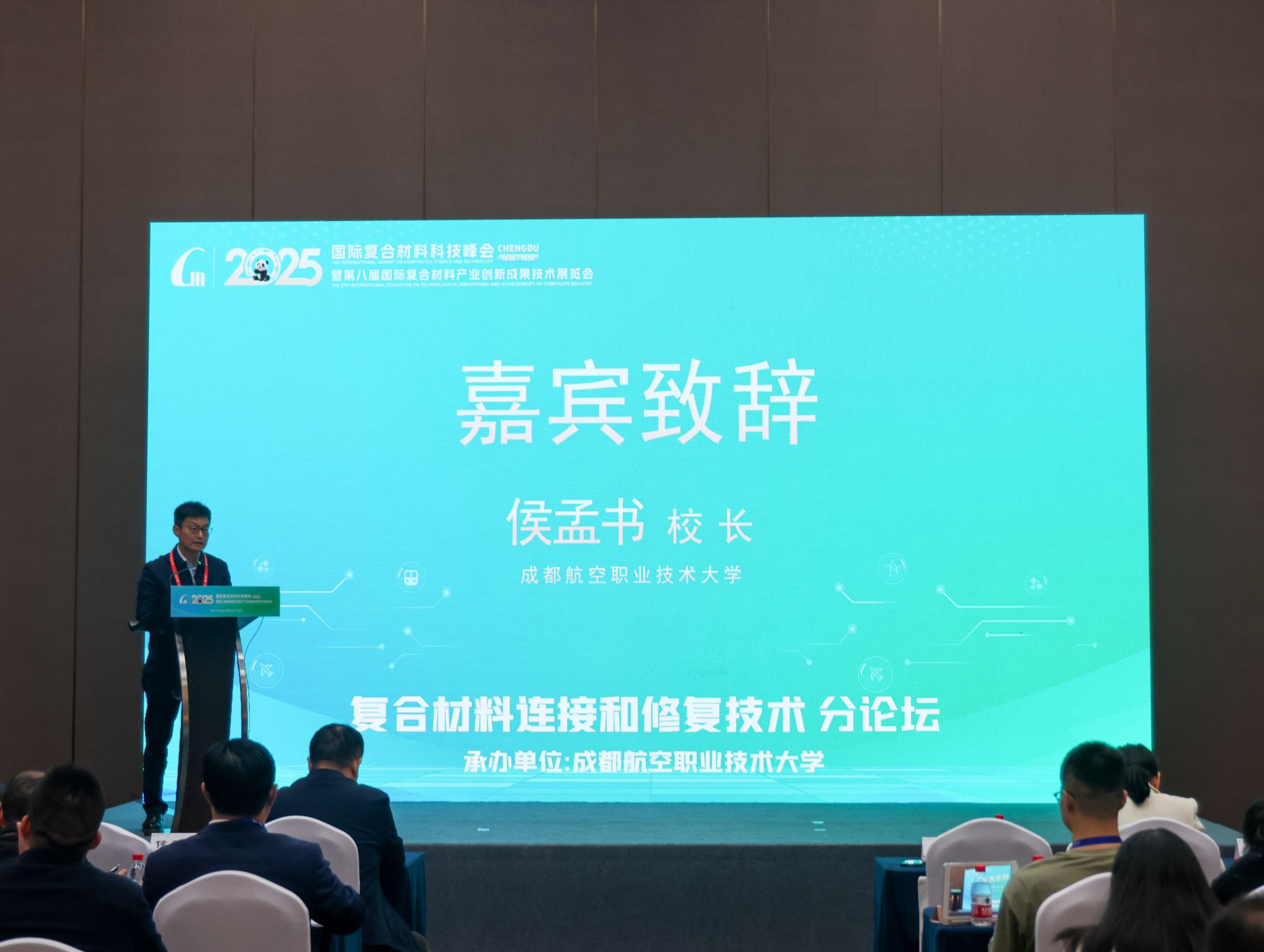 10月25日,2025国际复合材料科技峰会(ISCT2025)暨第八届国际复合材料产业创新成果技术展览会在成都空港国际会议中心举行。本届峰会由中国复合材料学会主办,四川大学与成都航空职业技术大学(以下简称“成航”)、中国民用航空飞行学院共同承办。中国科学院、中国工程院共十三位院士齐聚成都,创下成航(承办单位中唯一高职院校)承办会议史上的新纪录,充分彰显了学校从高职专科到全国首所航空类职业本科大学的跨越式发展获得的业界认可。作为峰会亮点之一,成航主办的“复合材料连接与修复学术分论坛”吸引了百余名专家学者参与。