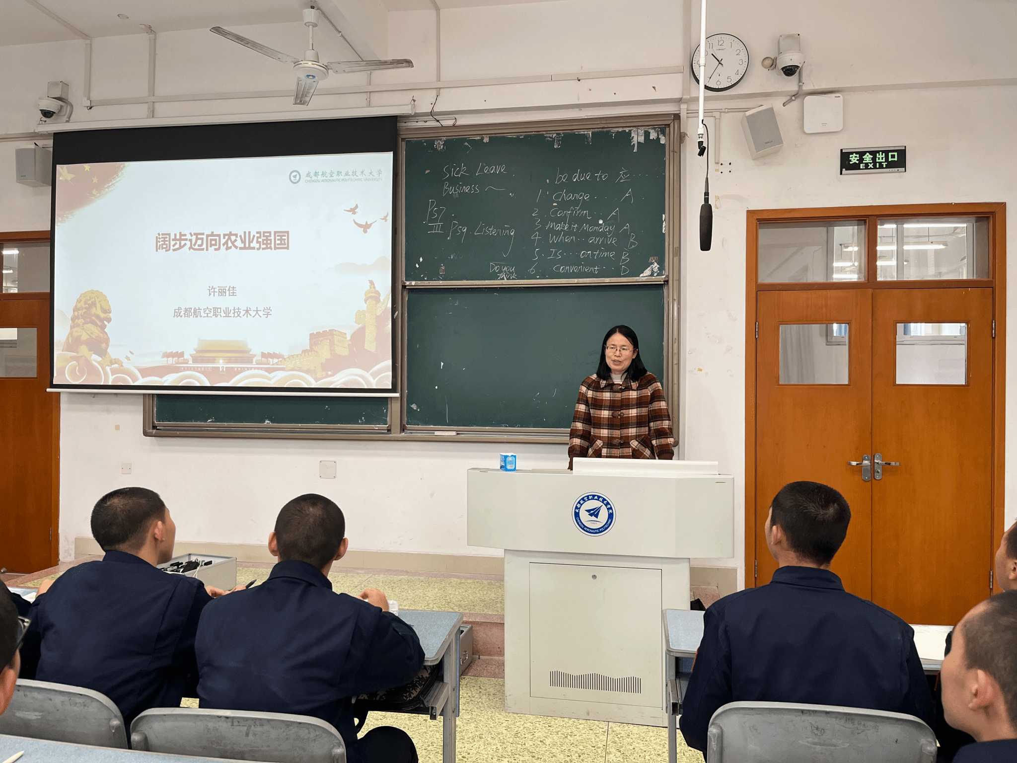 为深入贯彻落实党的二十届四中全会精神和《关于深化新时代学校思想政治理论课改革创新的若干意见》等文件精神,11月24日,成都航空职业技术大学副校长许丽佳为250630107班和250630108班学生讲授主题为“阔步迈向农业强国”的形势与政策课。课堂聚焦新时代我国加快建设农业强国的战略部署,围绕稳粮保供、科技赋能、产业升级、乡村振兴等重点内容展开系统讲解。